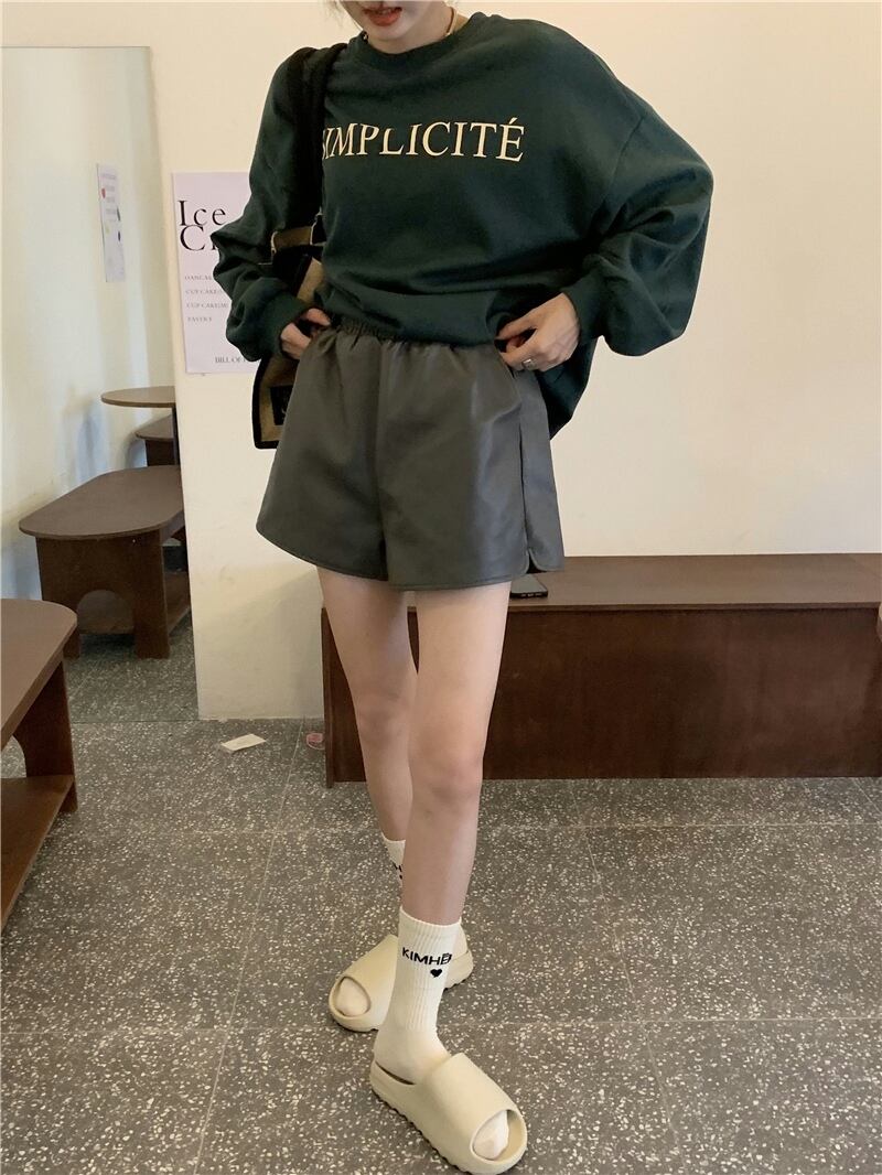 レディーススプリング秋物セーター レザーショーツ セット 春物 オータム SYJ77237856001