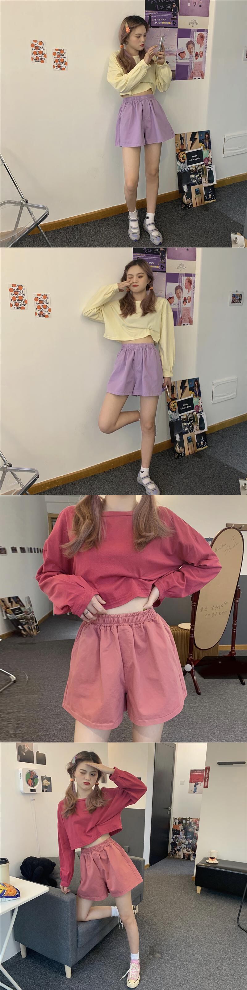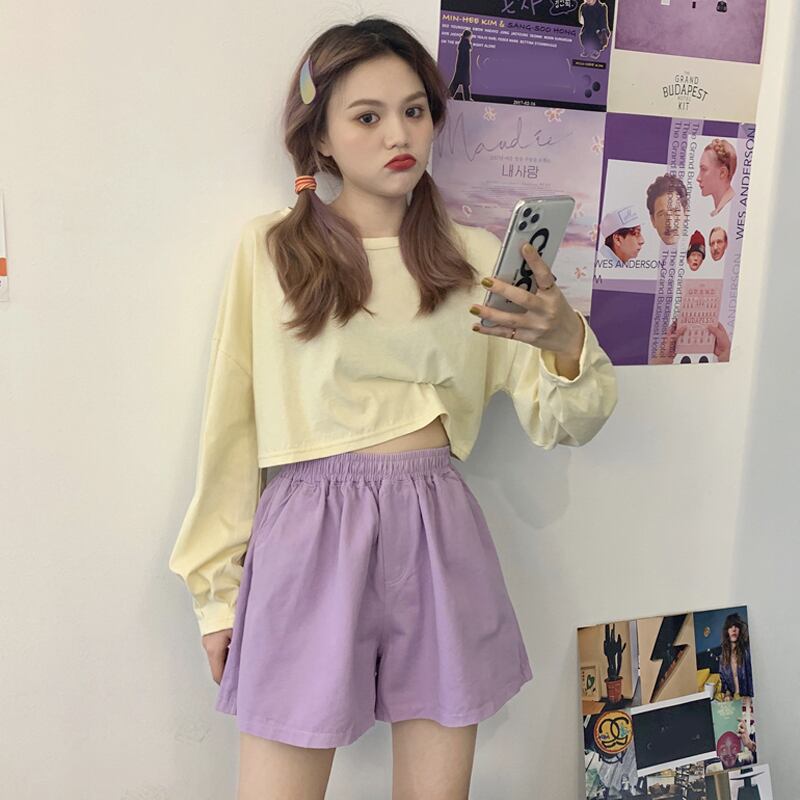 カジュアルショーツ 夏服薄手ハイウェストウェストルーズワイドレッグパンツ 夏物 ワイドパンツ ウエスト SYJ9815830421