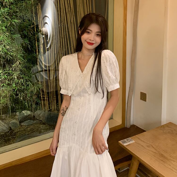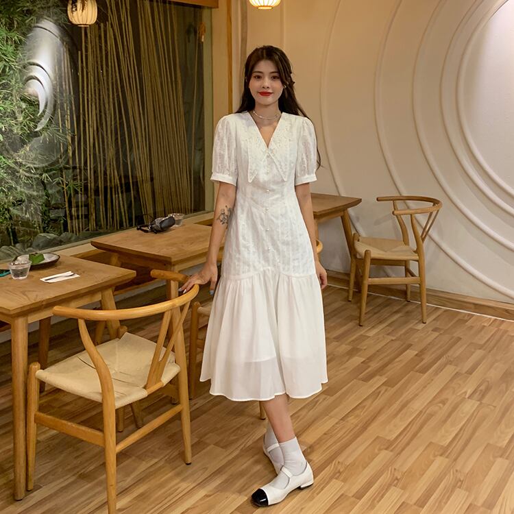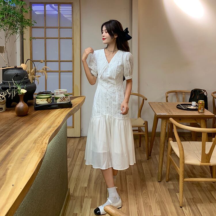 ホワイトワンピースレディース夏服スタイルロングスカート 大人ガーリー スウィート キュート カジュアル 夏物 SYJ3241071831