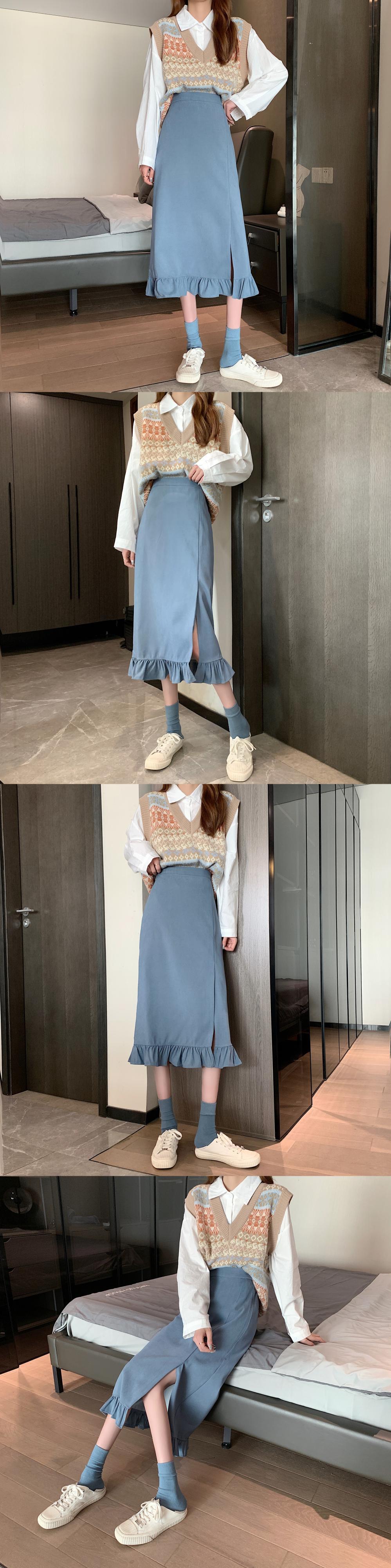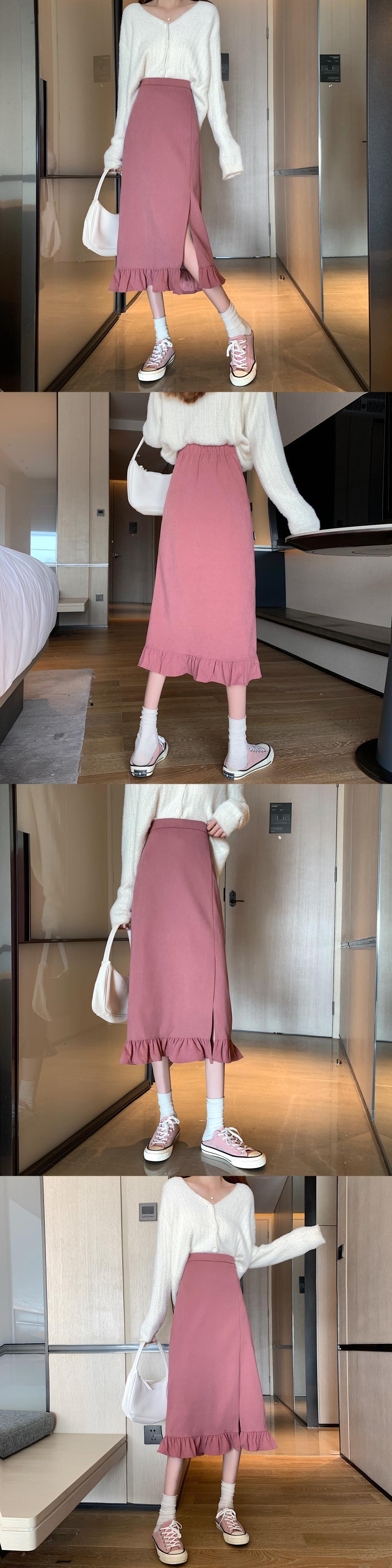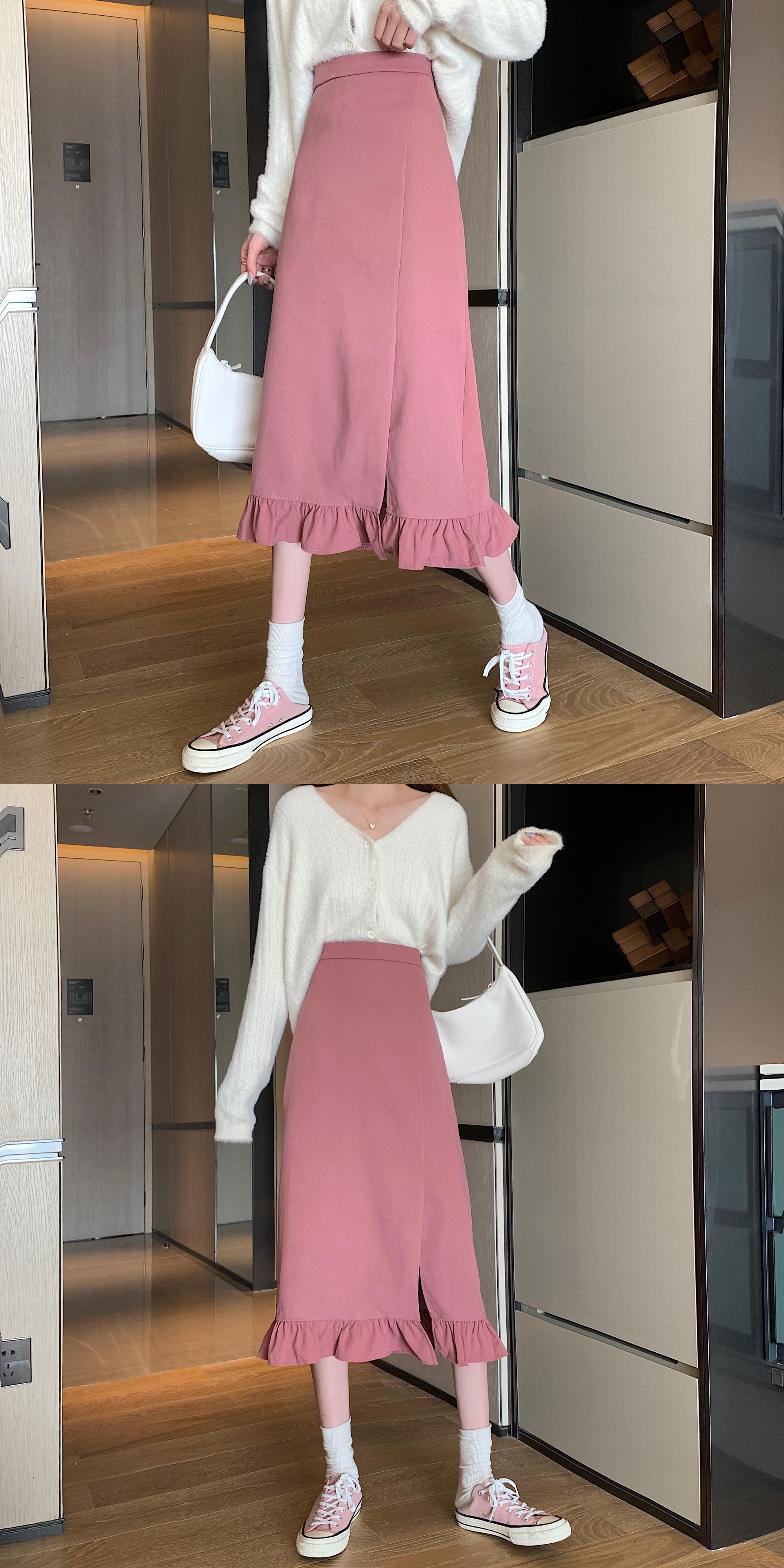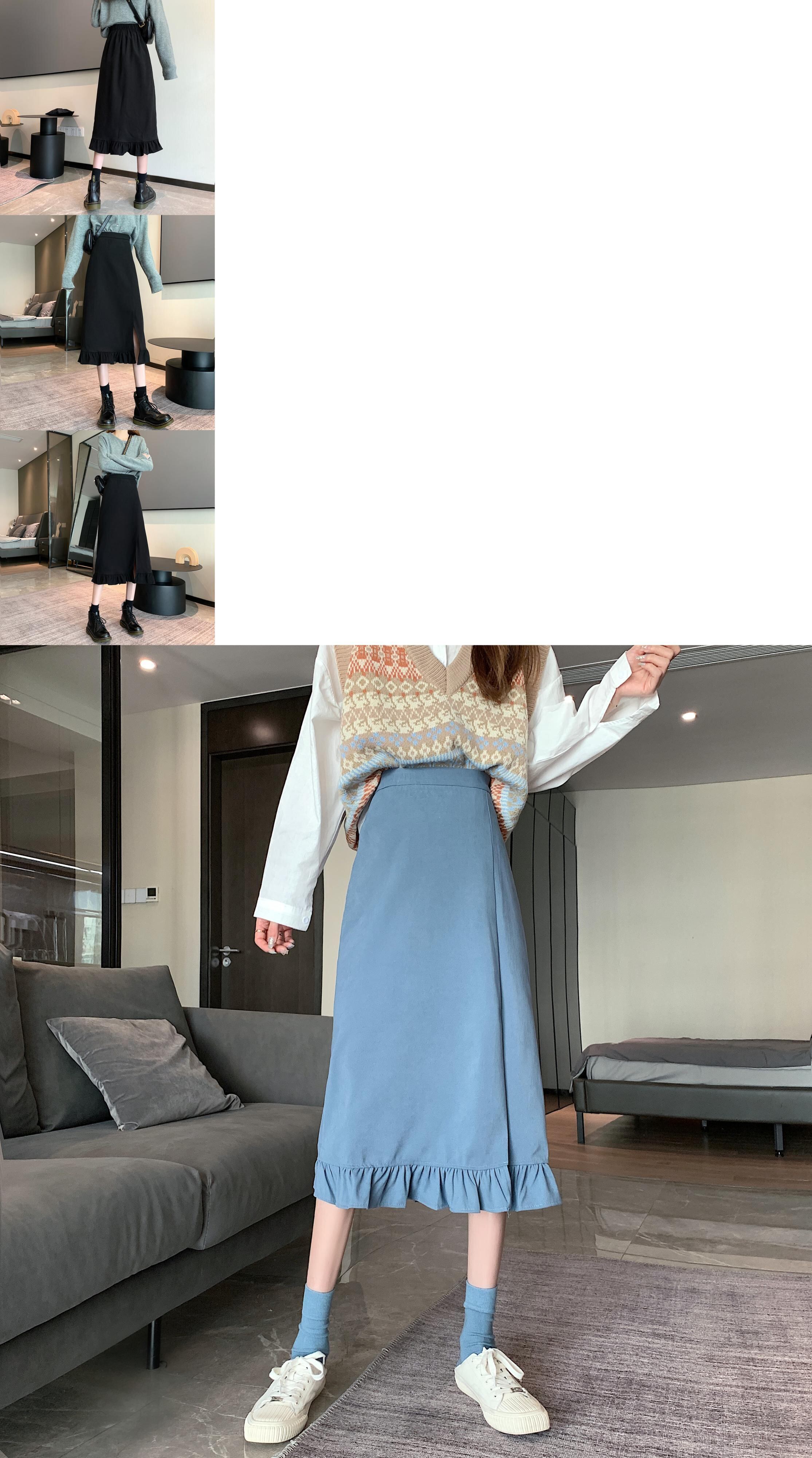 ブラックスリットスカート スプリングハイウェストAライン 春物 ウエスト ミドル丈 SYJ51525838723