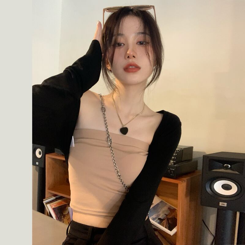 色:コーヒーカラーチューブトップワンピース,ブラックチューブトップシングルピース,アプリコットアウターシングルピース,黒いシングルピース