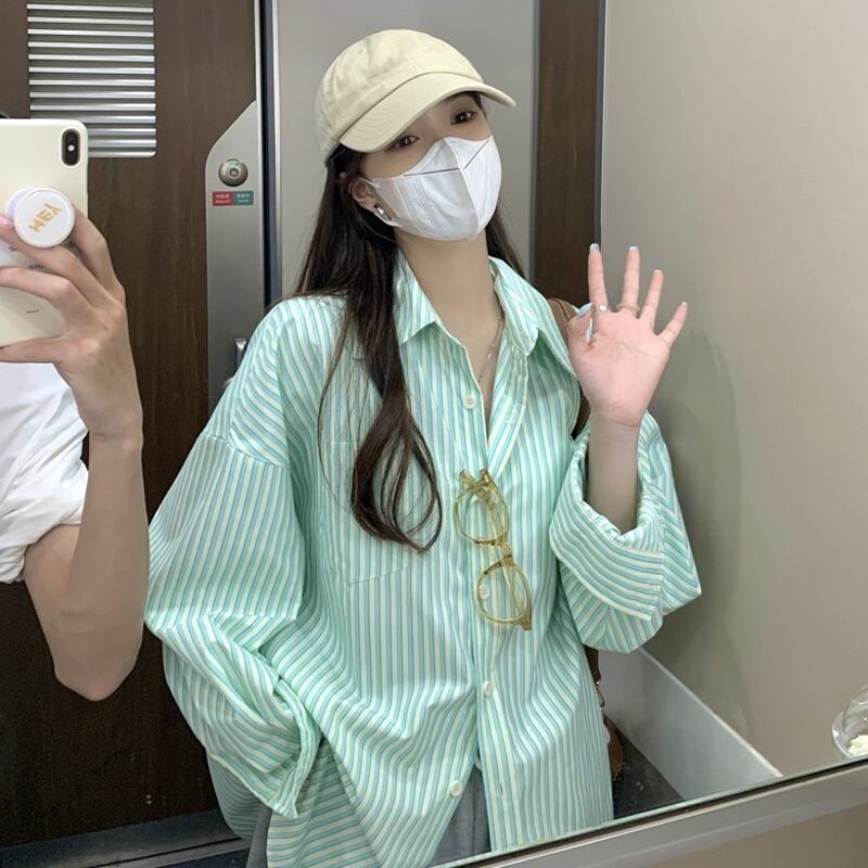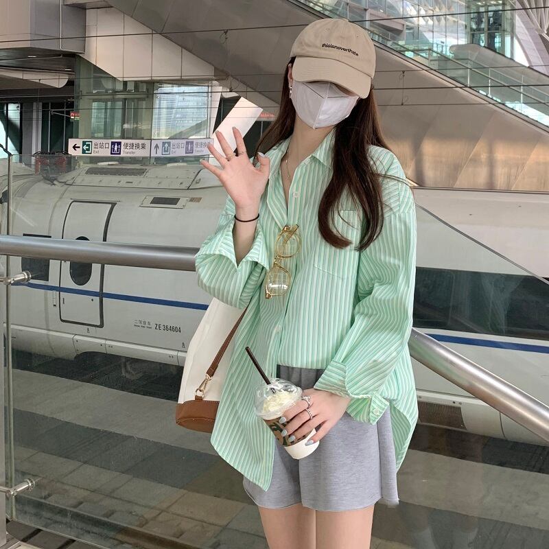 ストライプシャツ ジャケット 夏服薄手オーバーサイズトップス 夏物 SYJ48562276307