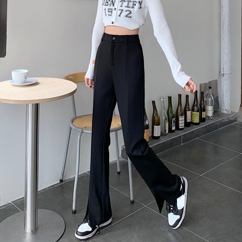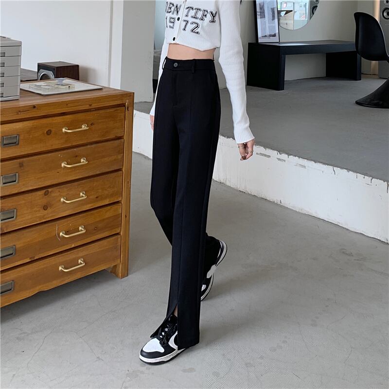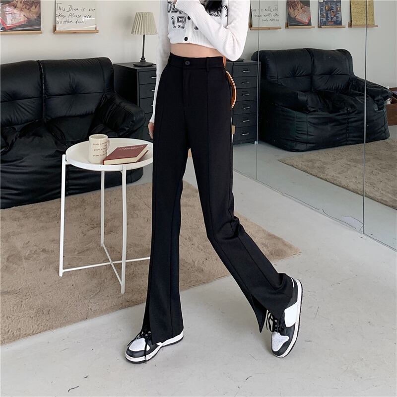 ブラックパンツ スプリングスリットルーズ 春物 SYJ3005727507