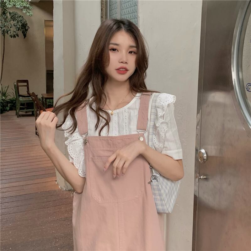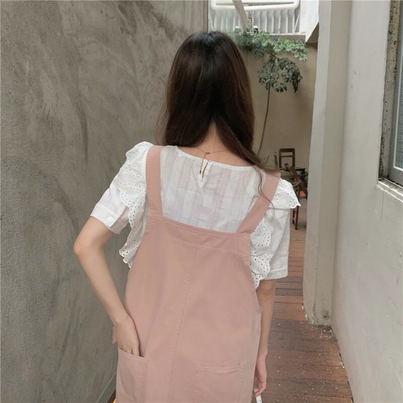 色:ワンピースのレースシャツ,ピンクのストラップドレスワンピース