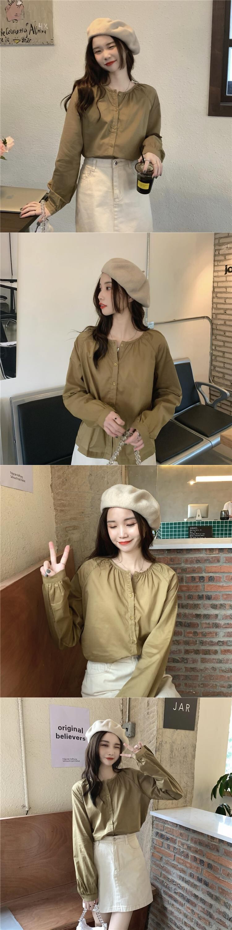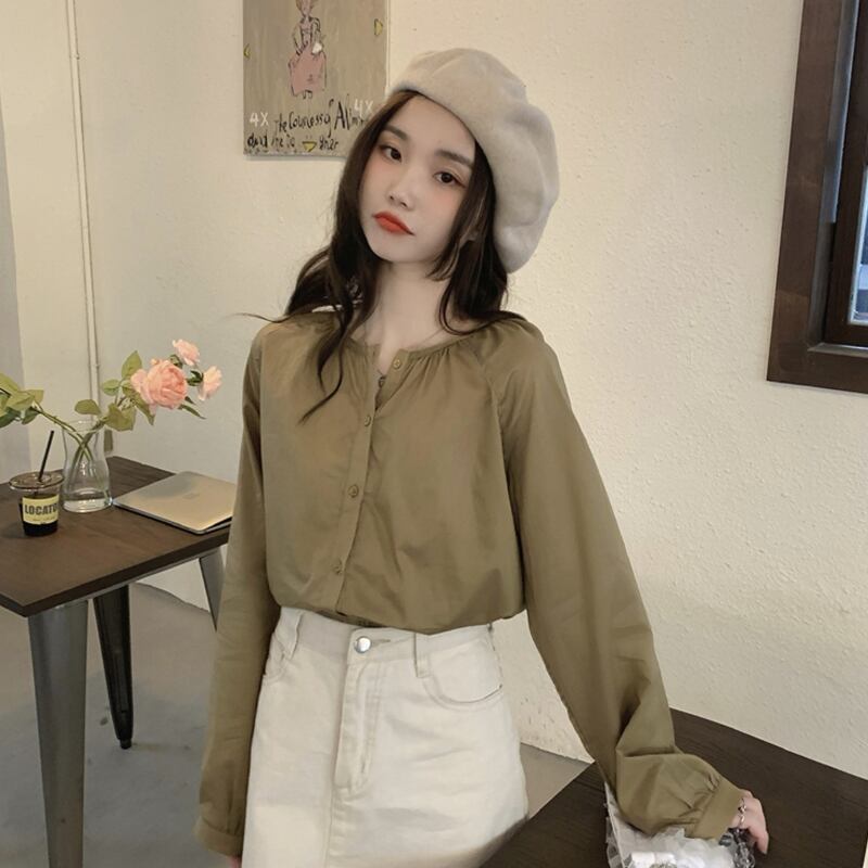 スプリング秋物シャツ スタンダードトップス ロング レトロ 春物 オータム 長袖 SYJ5049374086