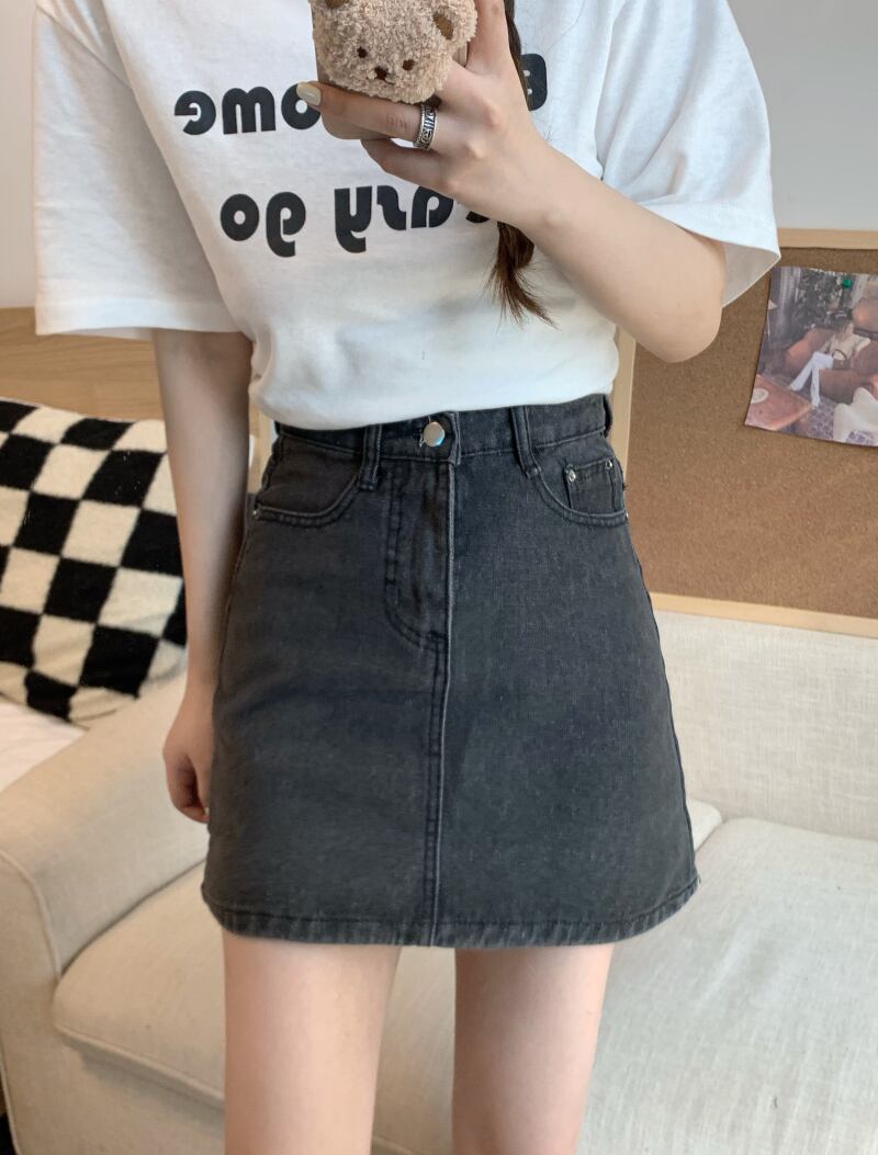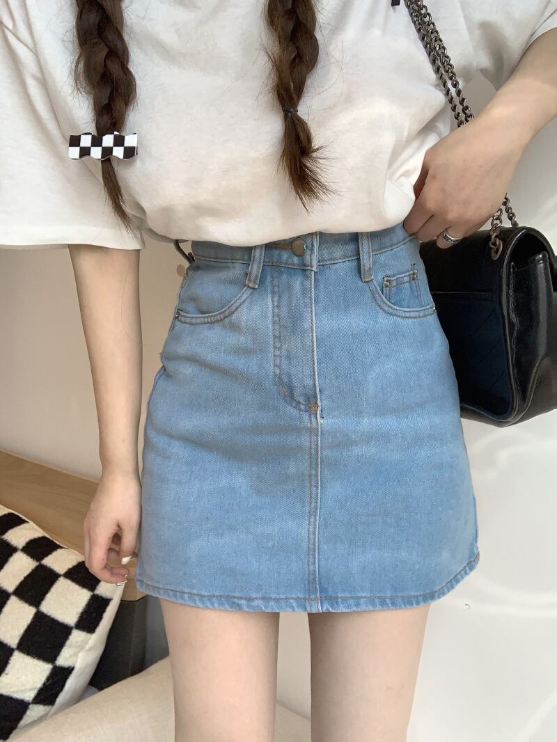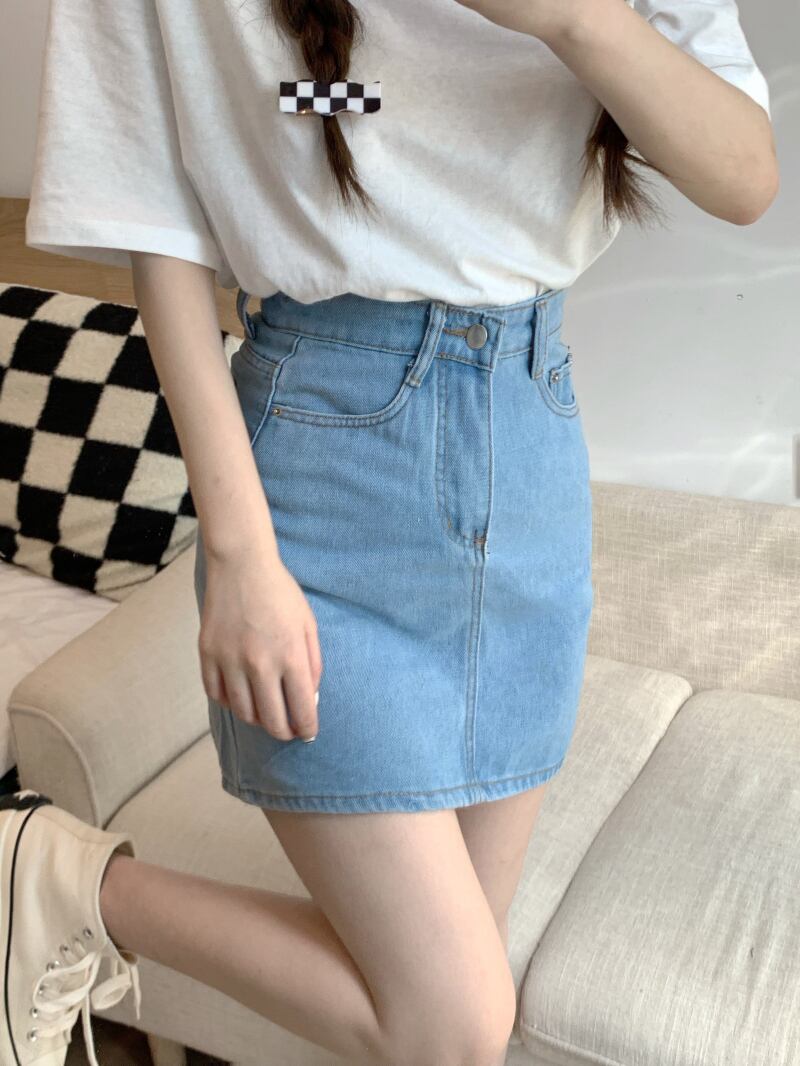 ブルースカート 夏服ハイウェストウェストAラインショート 夏物 ウエスト SYJ15321785563