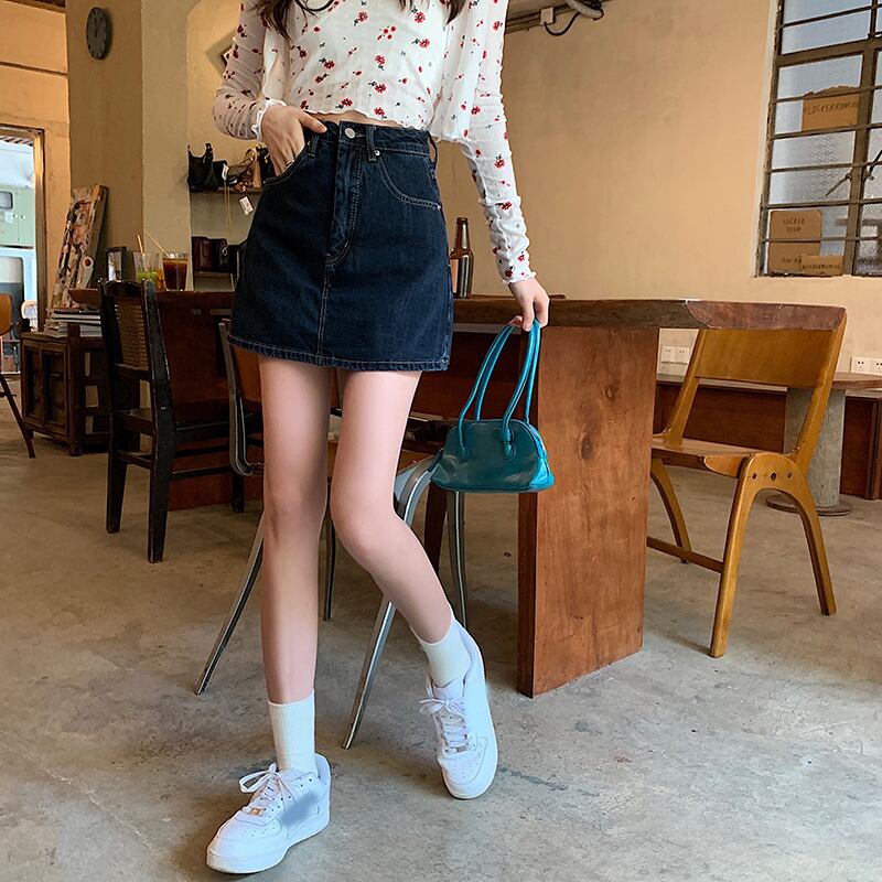 ダークブルースカート 夏服ハイウェストウェストAラインショーツ 夏物 ウエスト SYJ63094336549