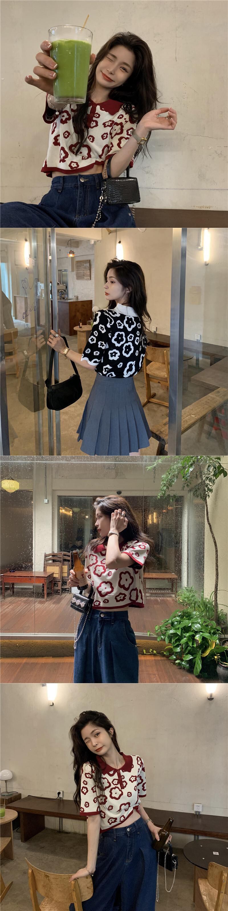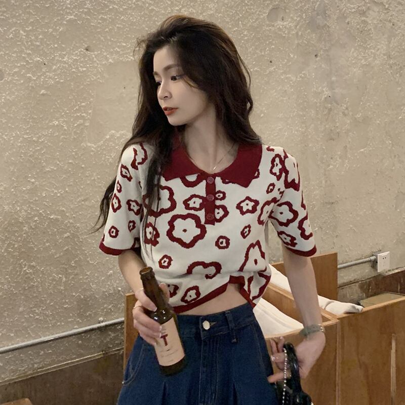 ニットショートTシャツシャツ 夏服トップス 大人ガーリー スウィート キュート カジュアル 夏物 SYJ21186325172