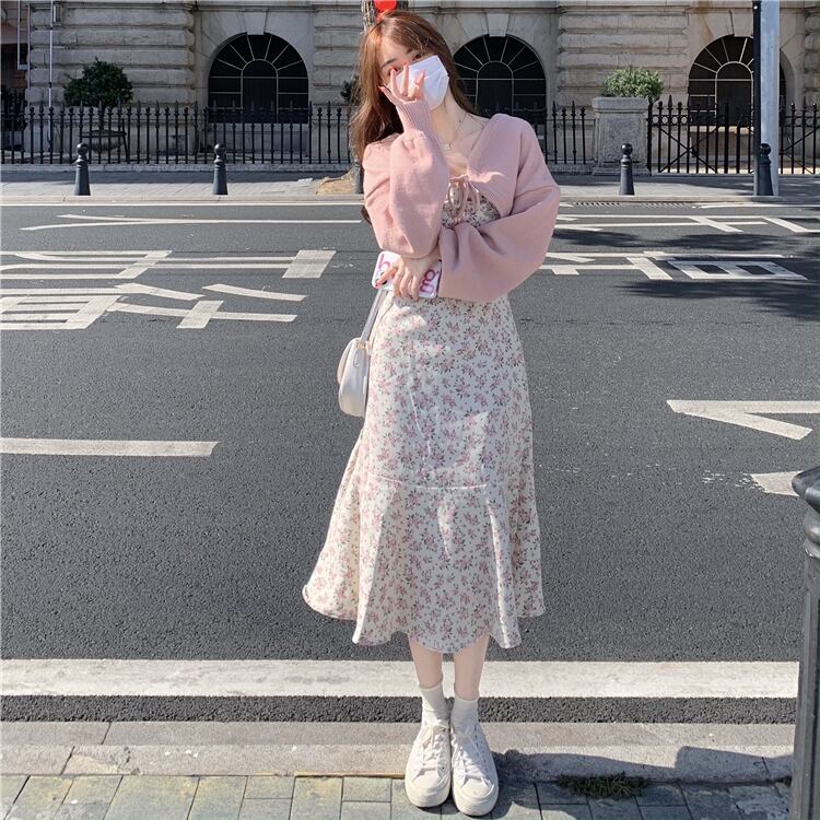 フローラルワンピーススプリングスタイルロングスカート 大人ガーリー スウィート キュート カジュアル 春物 花柄 SYJ46072291115