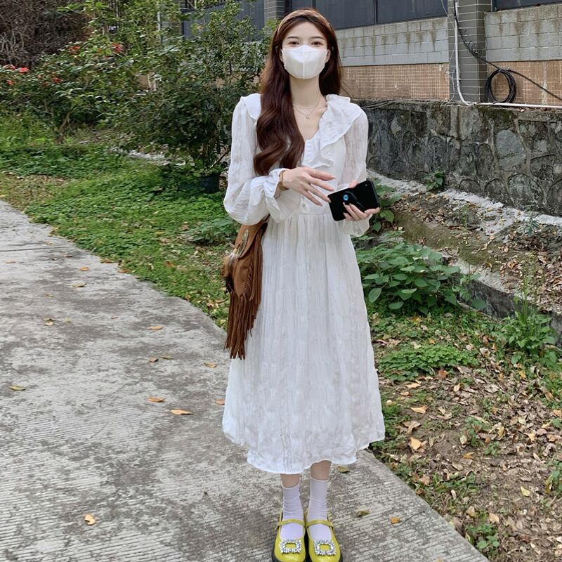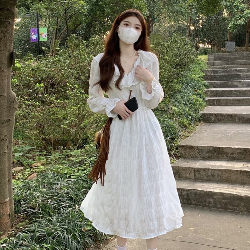 Vネックワンピーススプリングスタイルスカート ロング 春物 長袖 SYJ24949655706