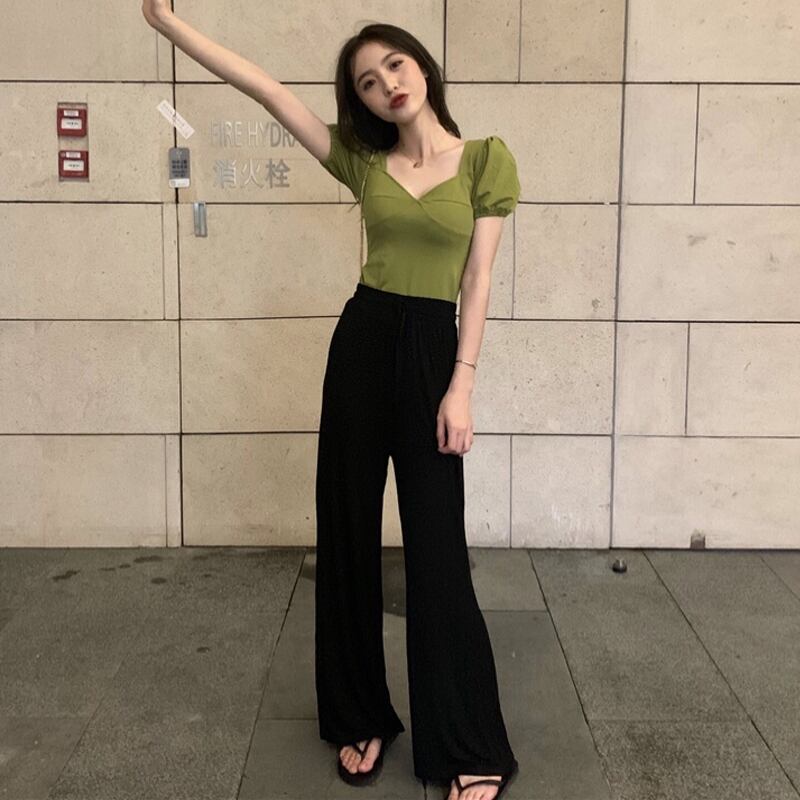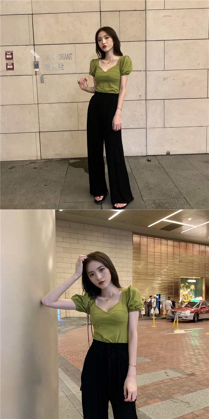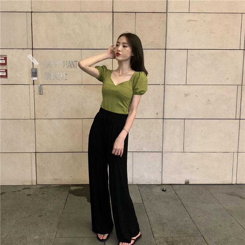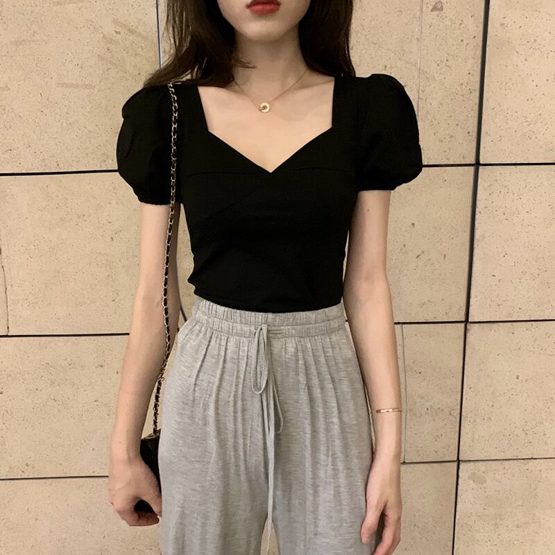 カラーショートトップス 夏服 大人ガーリー スウィート キュート カジュアル 夏物 スクウェア パフスリーブ SYJ64922156076