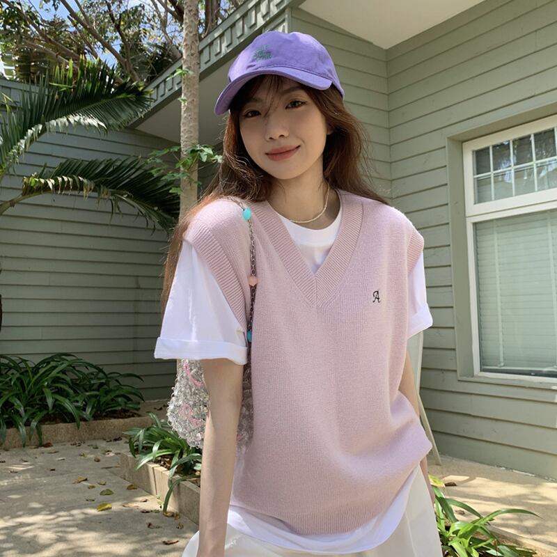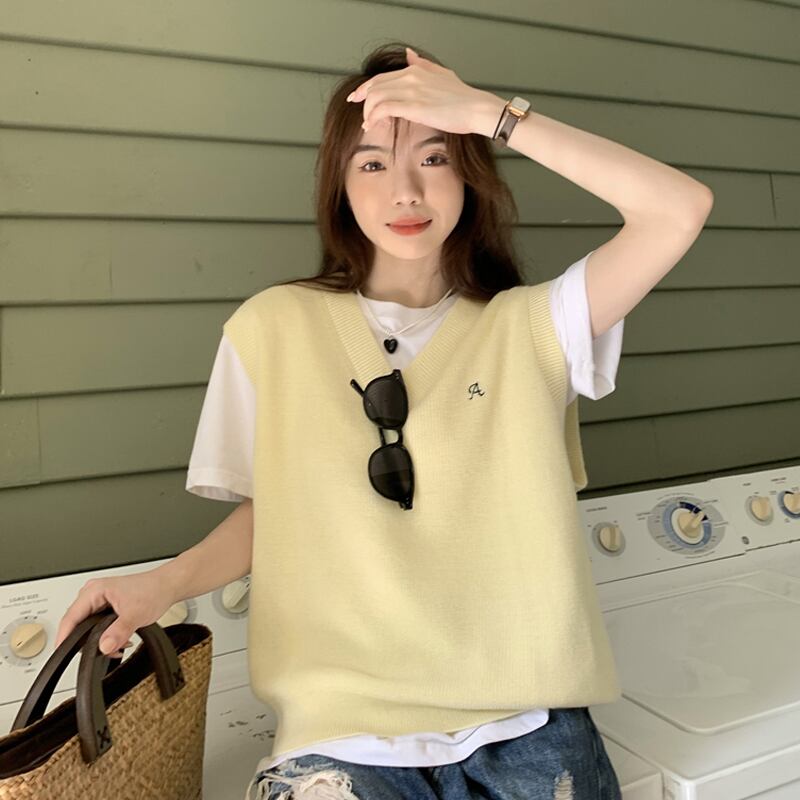 ニットスプリング秋物薄手Vネックセーター イエロー レッド 春物 オータム SYJ32186253165