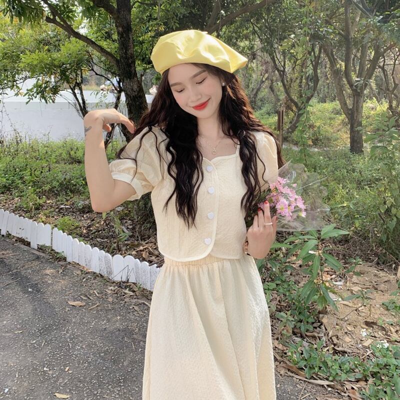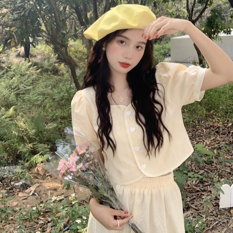 スカート 夏服ショートトップス セット 大人ガーリー スウィート キュート カジュアル 夏物 SYJ40333844757