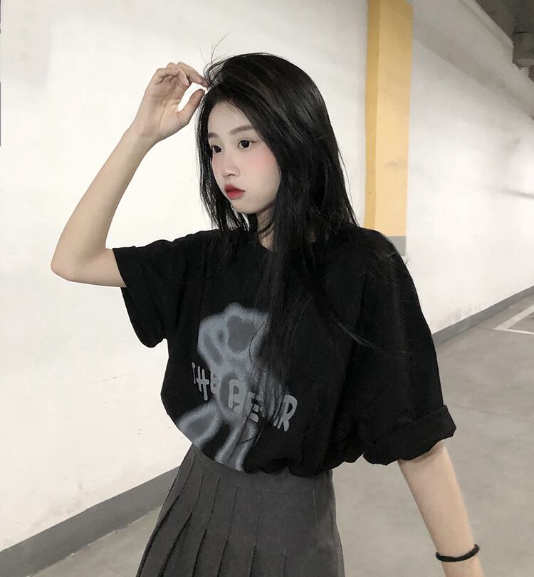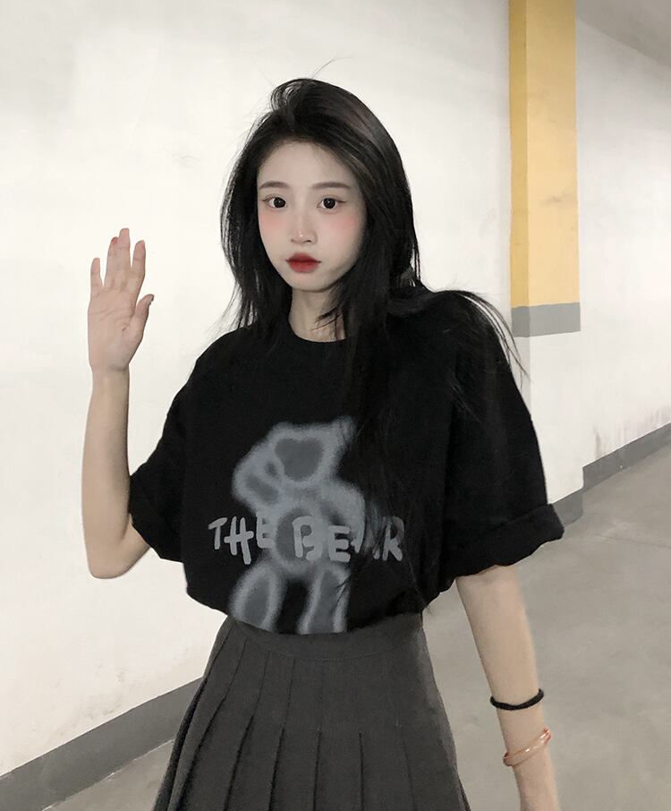 ブラックTシャツ夏服ルーズトップス NEW 夏物 SYJ76584282465