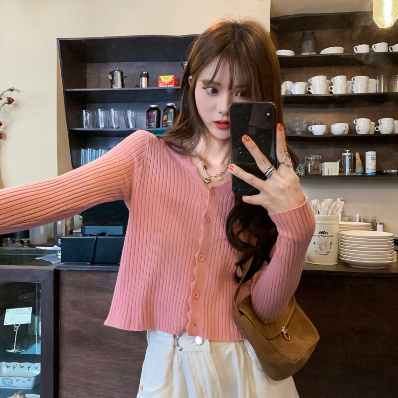 ニットカーディガンスプリングブラウス ショートトップス ピンク 大人ガーリー スウィート キュート カジュアル 春物 ピュア SYJ45727872330