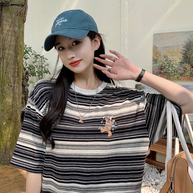 ストライプTシャツ夏服ルーズトップス NEW 夏物 SYJ68036717899