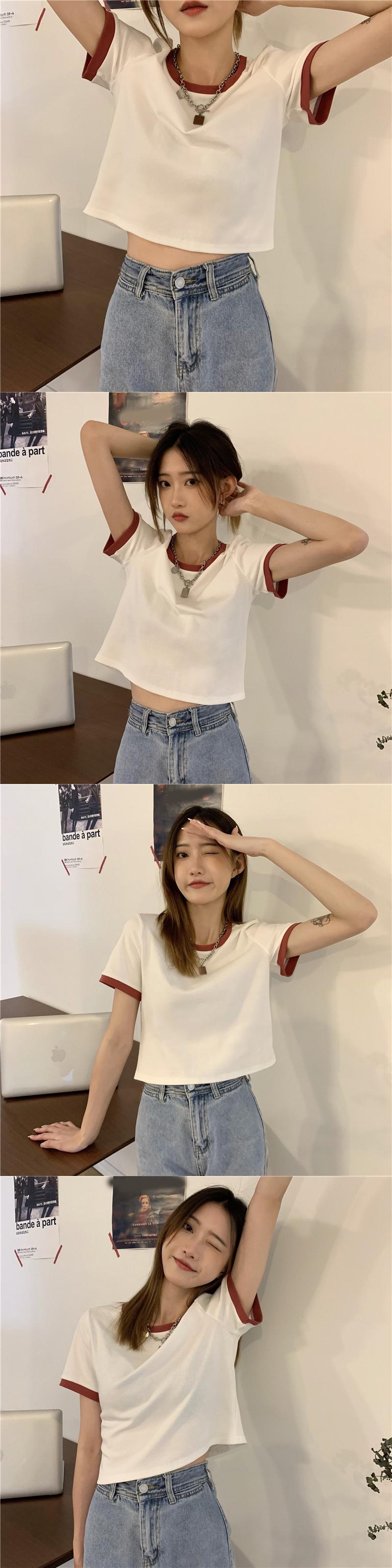 ショートTシャツ夏服ハイウェストウェストトップス NEW 大人ガーリー スウィート キュート カジュアル 夏物 ウエスト SYJ61808608048