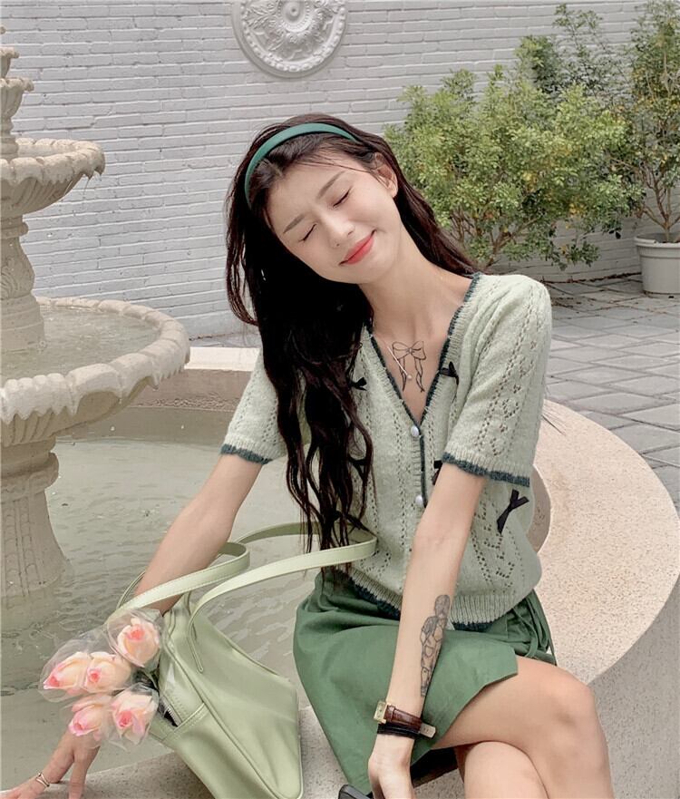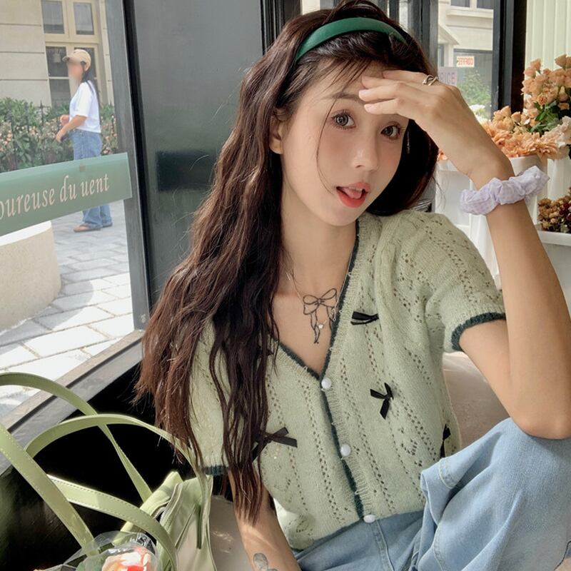ショートトップス 夏服韓国ファッションニットセーター カーディガン 夏物 SYJ45770968683