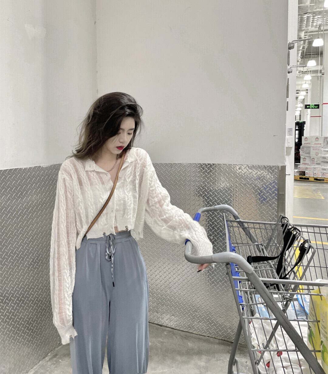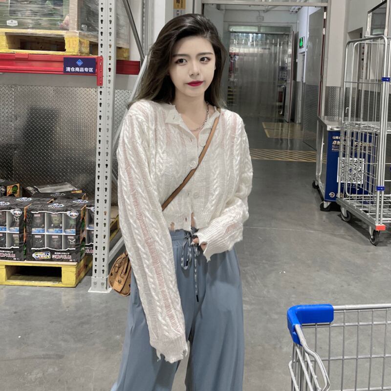 ホワイトニットカーディガンスプリングショートトップス 大人ガーリー スウィート キュート カジュアル 春物 SYJ62063017583