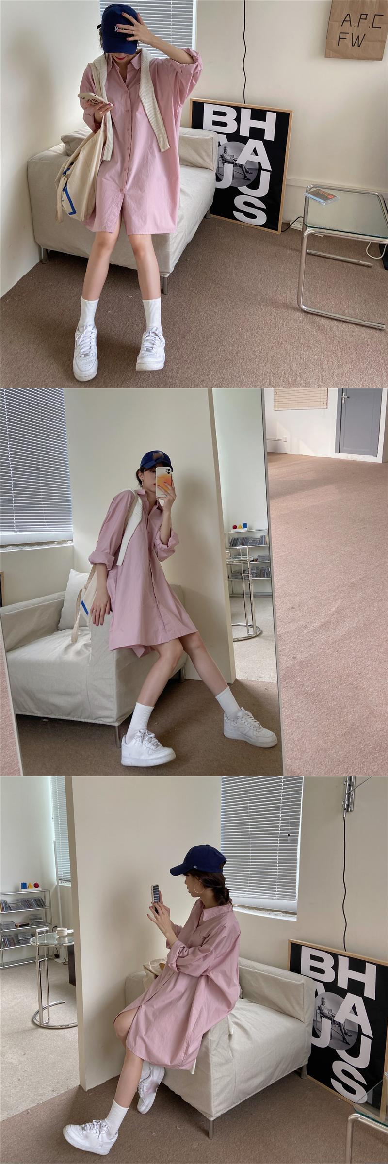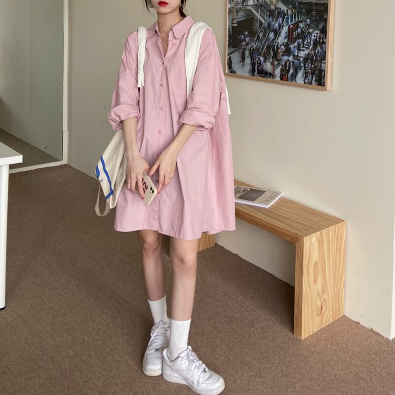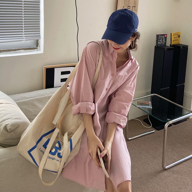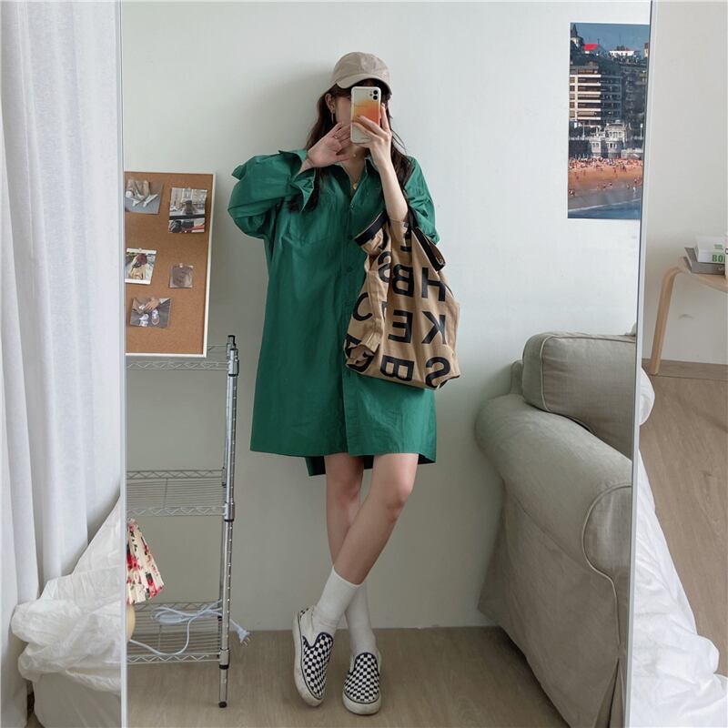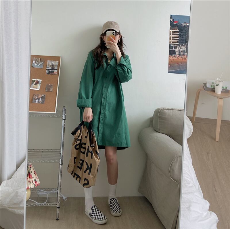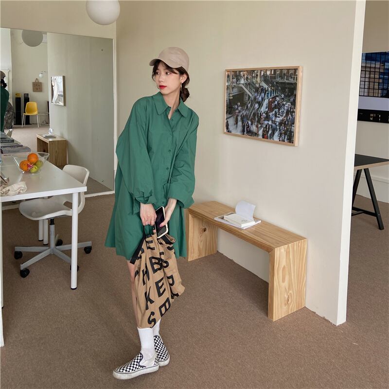 グリーンシャツ ワンピーススプリングルーズスタイルスカート ロング 春物 長袖 SYJ29080769746