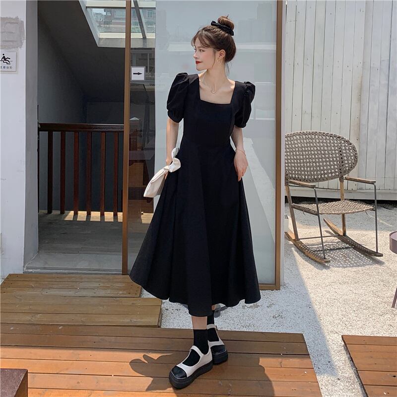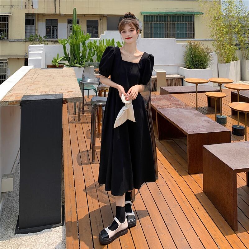 ワンピース夏服スタイルブラックロングスカート 夏物 スクウェア SYJ67880525252