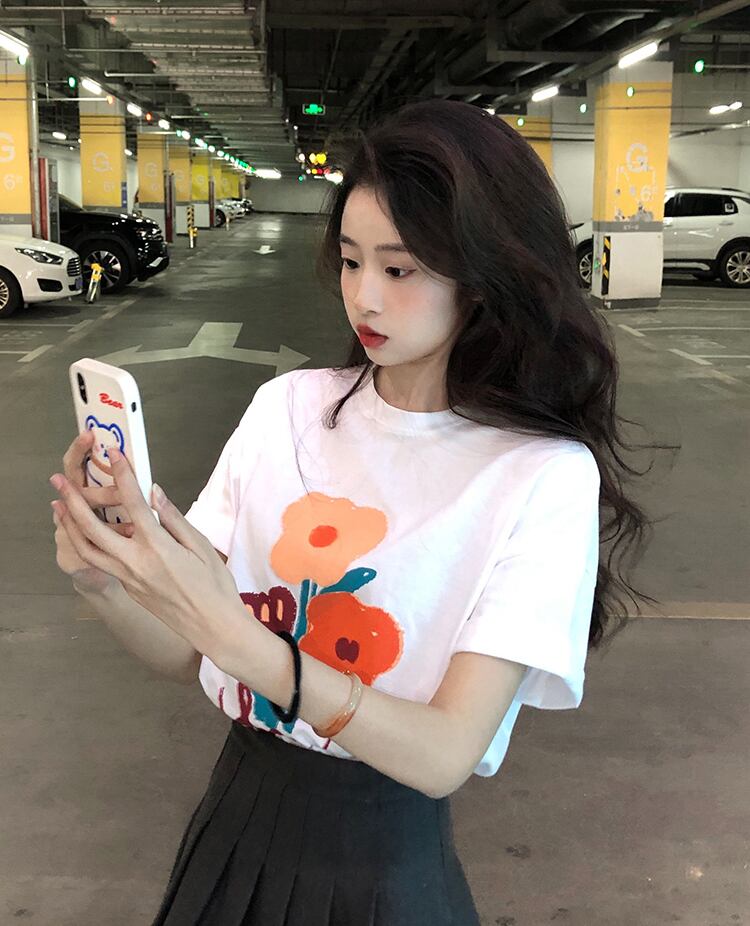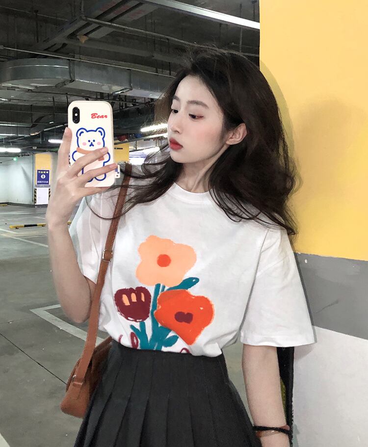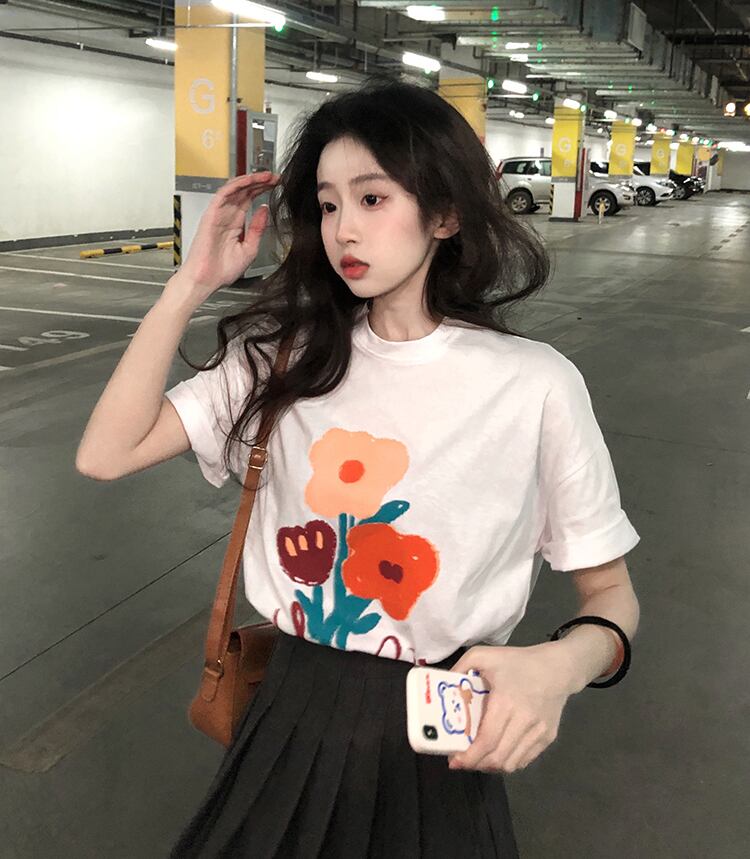 ブラックTシャツ夏服スタンダードルーズトップス NEW コットン レトロ 夏物 SYJ57150386899