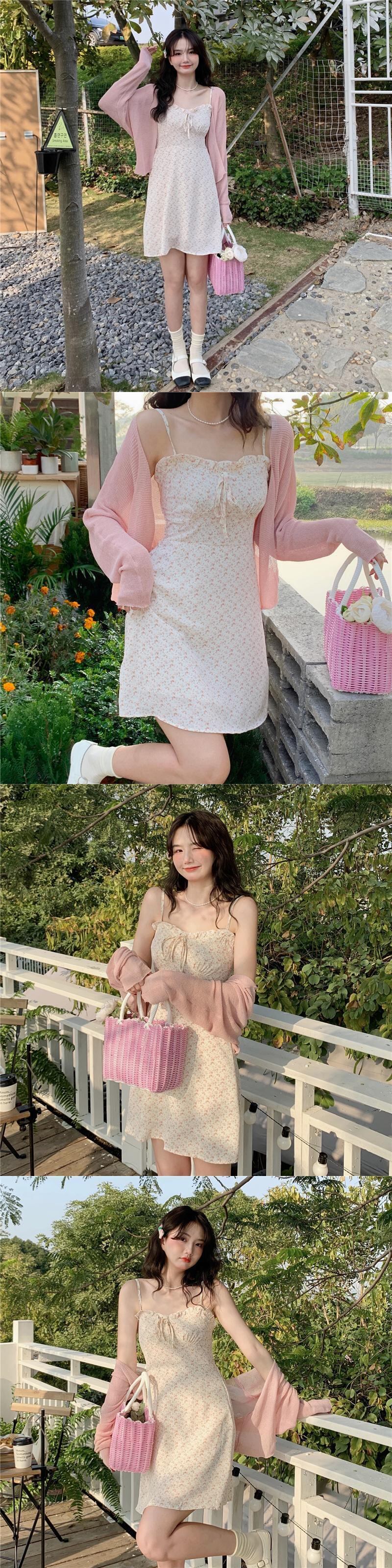 色:グリーンフローラルスカートワンピース,ピンクの花柄スカートワンピース,グリーンカーディガンワンピース,ピンクカーディガンワンピース
