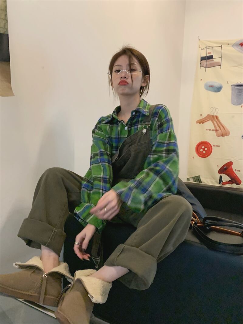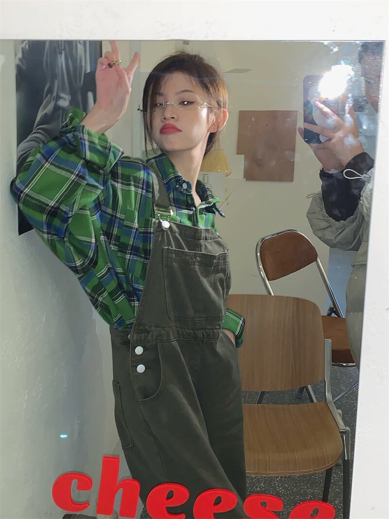 格子柄シャツ スプリングスタンダードトップス レッド レトロ 春物 NEW SYJ23609926912