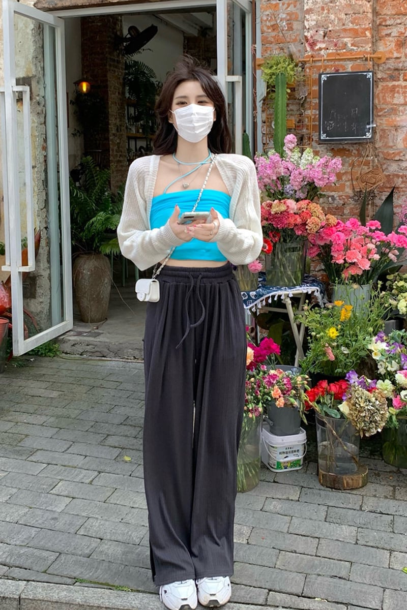 色:レイクブルーチューブトップワンピース,ホワイトカーディガンワンピース