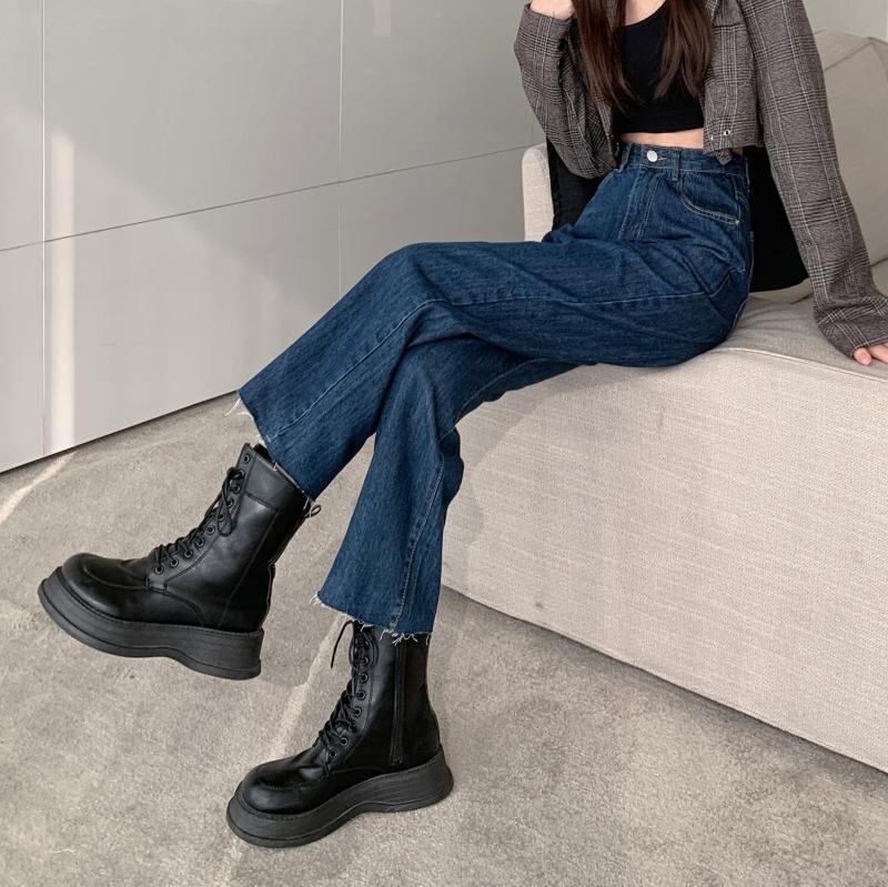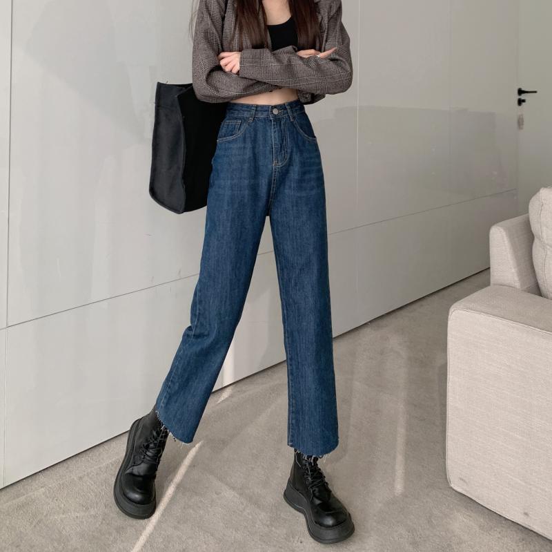 ダークブルージーンズ スプリング秋物ハイウェストスリムパンツ ルーズ 春物 オータム ウエスト SYJ98529896876