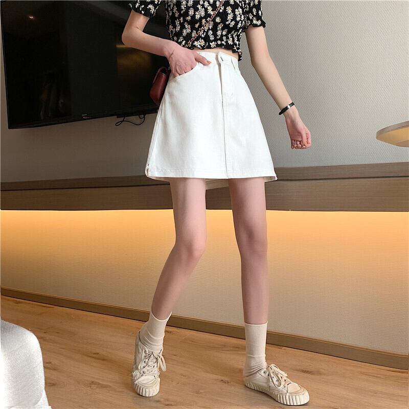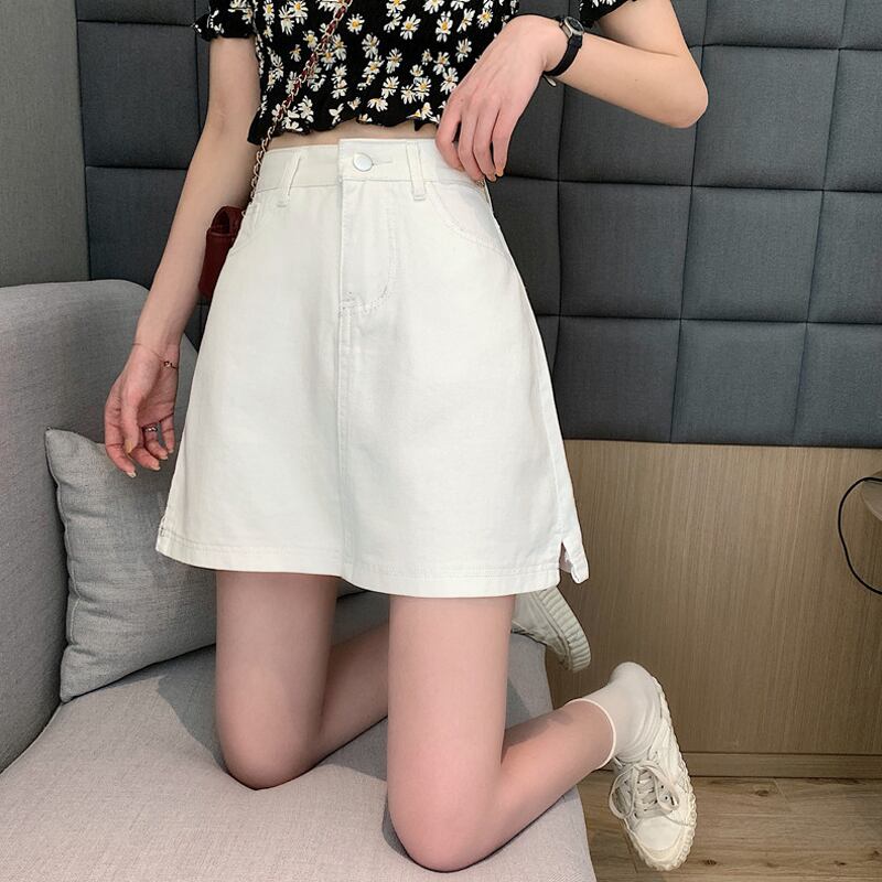 ホワイトスカート 夏服ハイウェストウェスト薄手Aラインショート 大人ガーリー スウィート キュート カジュアル 夏物 ウエスト SYJ91023688931