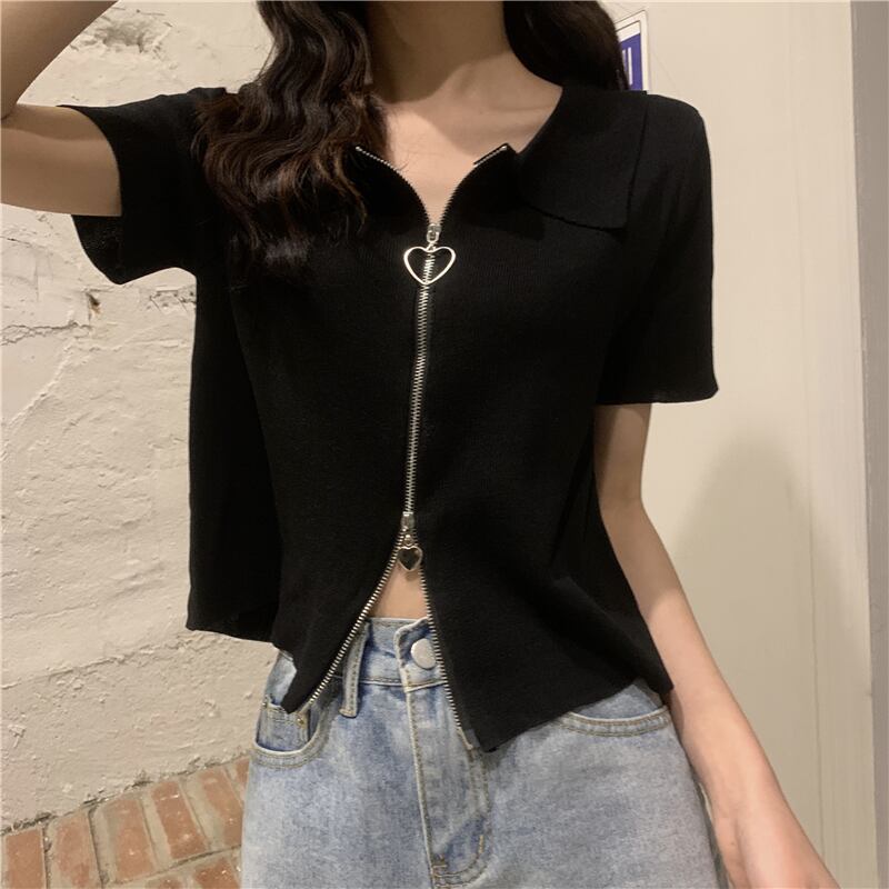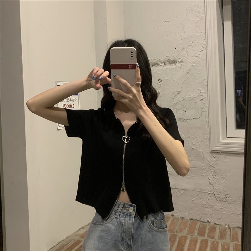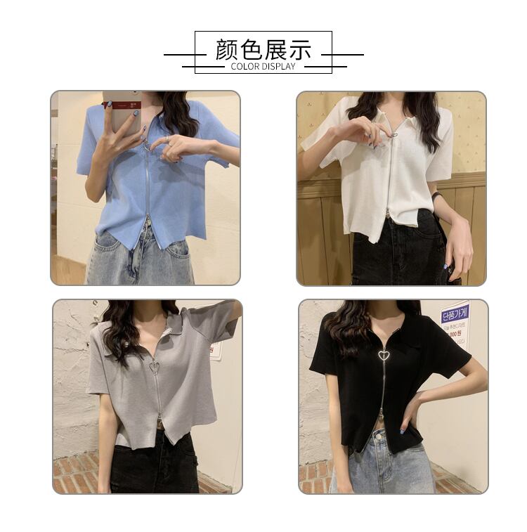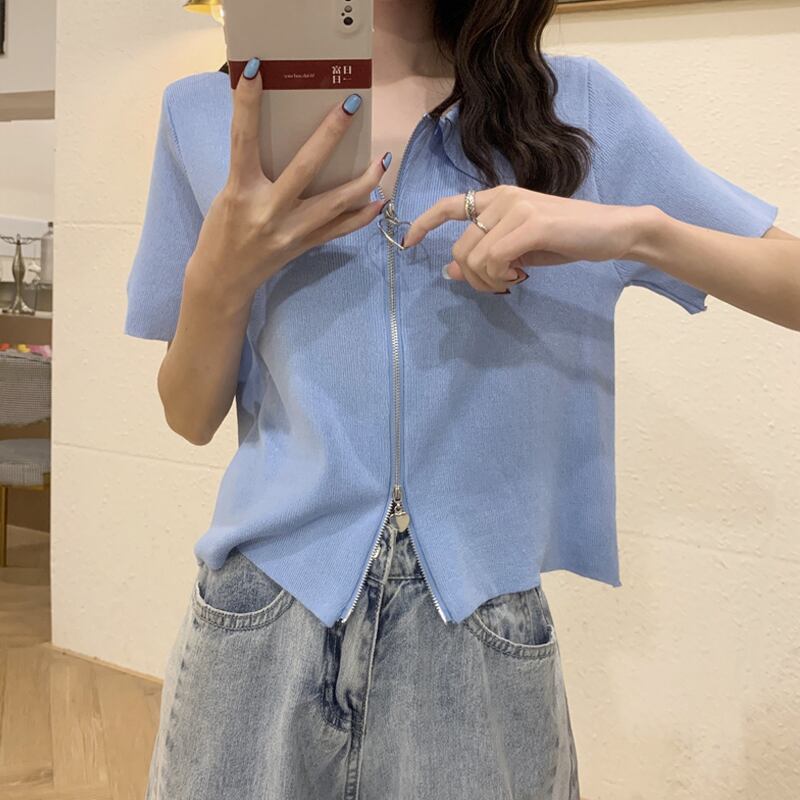ブルーカラージッパーニットカーディガン夏服ショートトップス 大人ガーリー スウィート キュート カジュアル 夏物 SYJ55625370666
