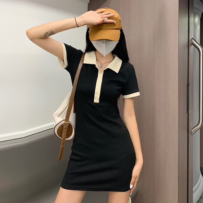 ブラックカラーワンピース夏服スリムスカート 夏物 SYJ4821612012