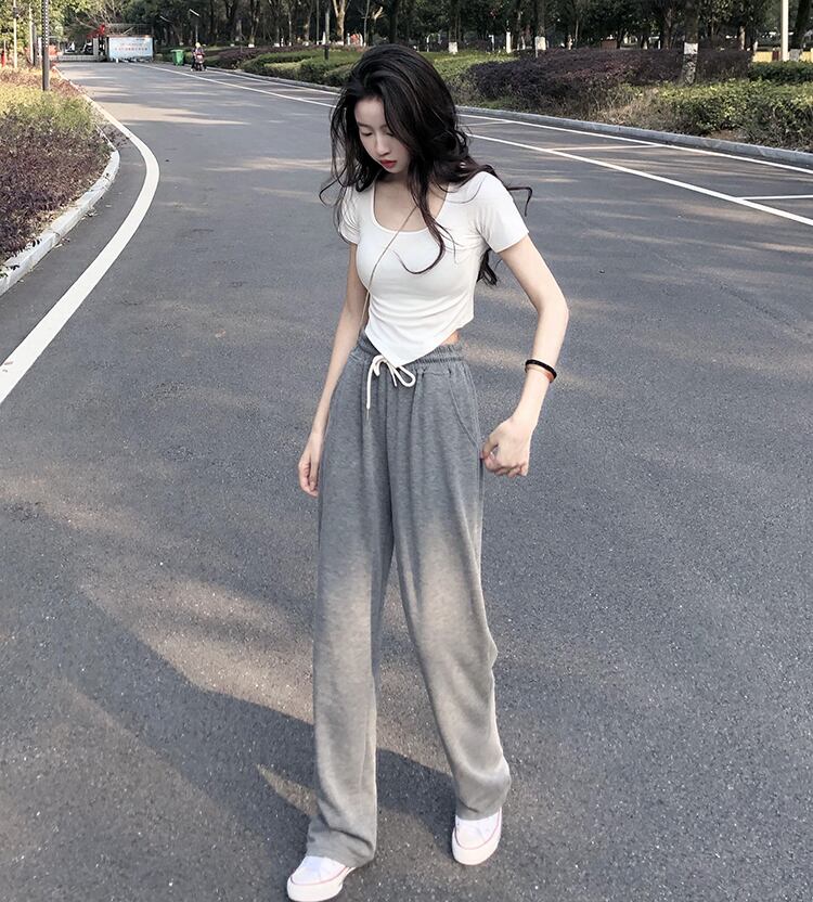 パンツ 夏服ウェスト薄手ワイドレッグルーズ 夏物 ワイドパンツ ウエスト SYJ65071277548