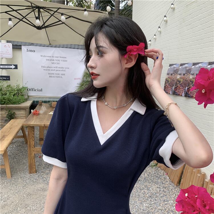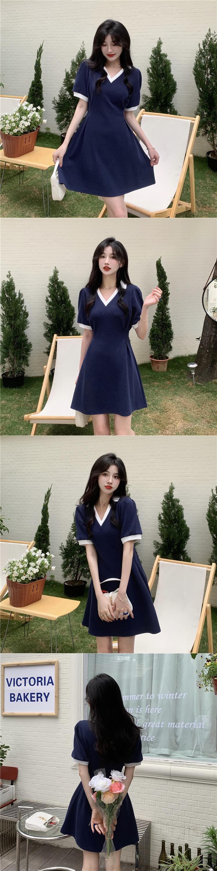 Vネックワンピース夏服スタイルスカート 大人ガーリー スウィート キュート カジュアル 夏物 SYJ30934850441