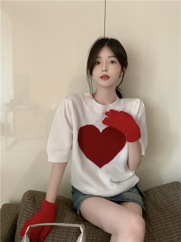 ホワイトニットショートTシャツ夏服トップス 夏物 SYJ75361479963