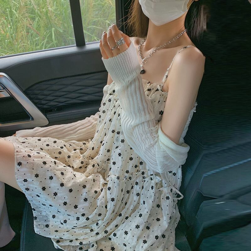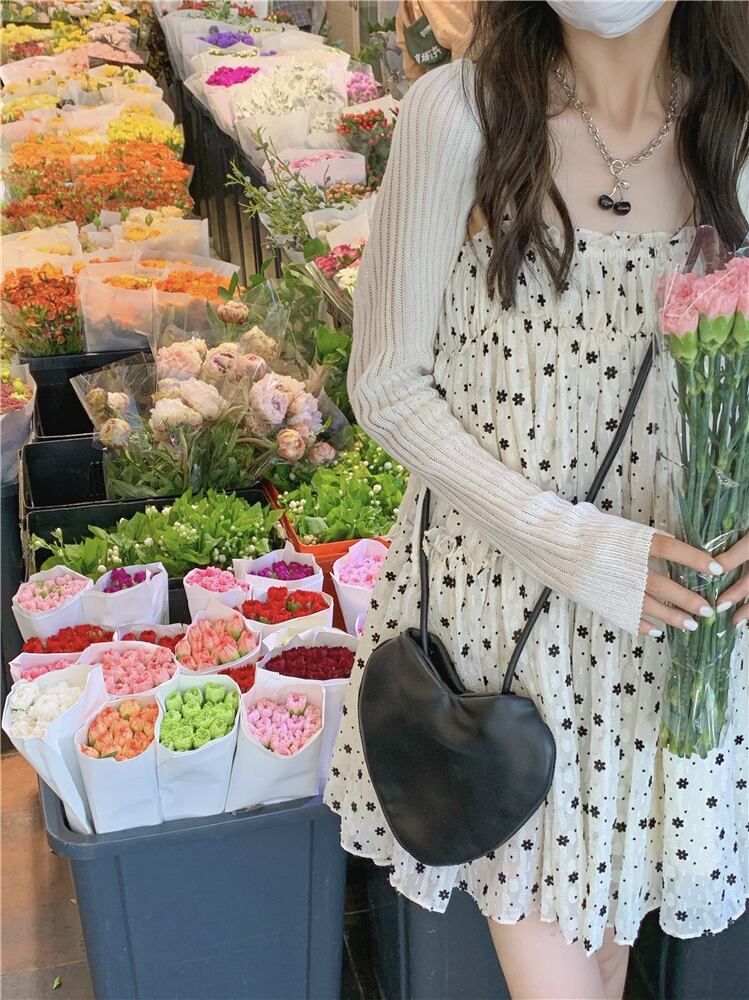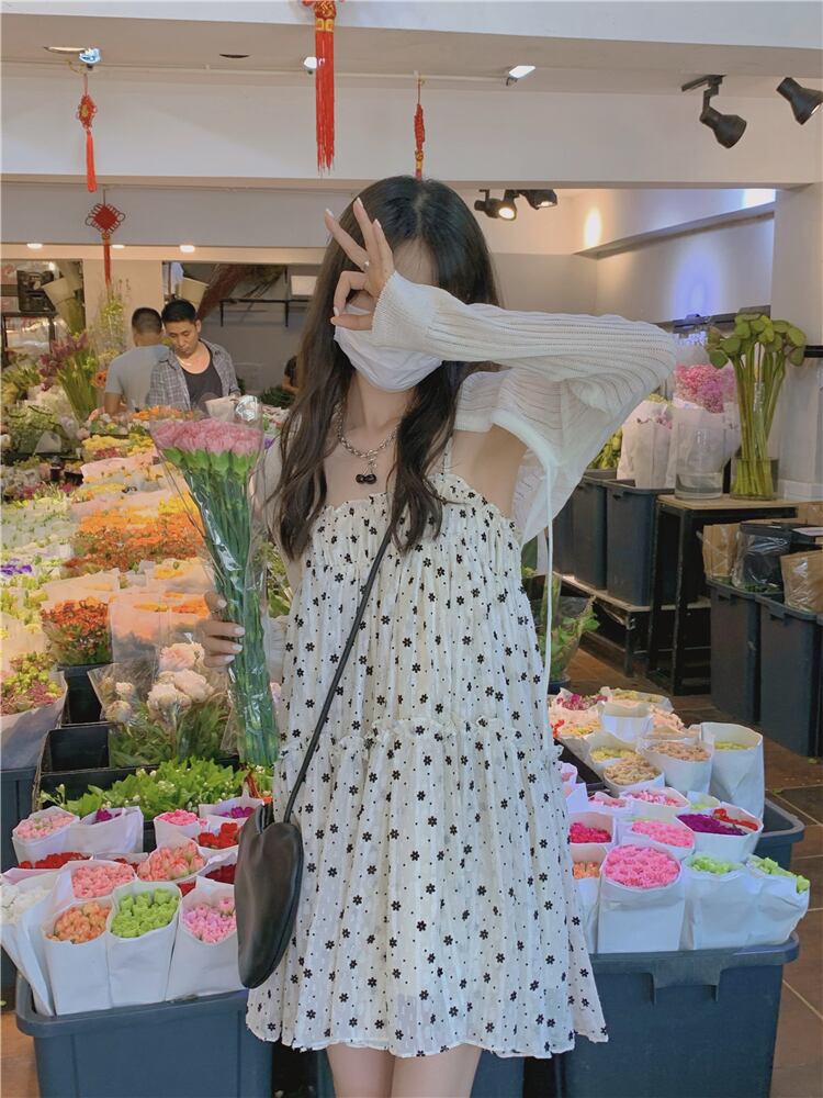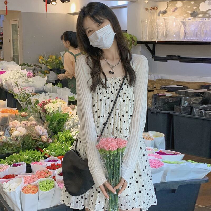 色:ホワイトカーディガンワンピース,小花サスペンダースカートワンピース