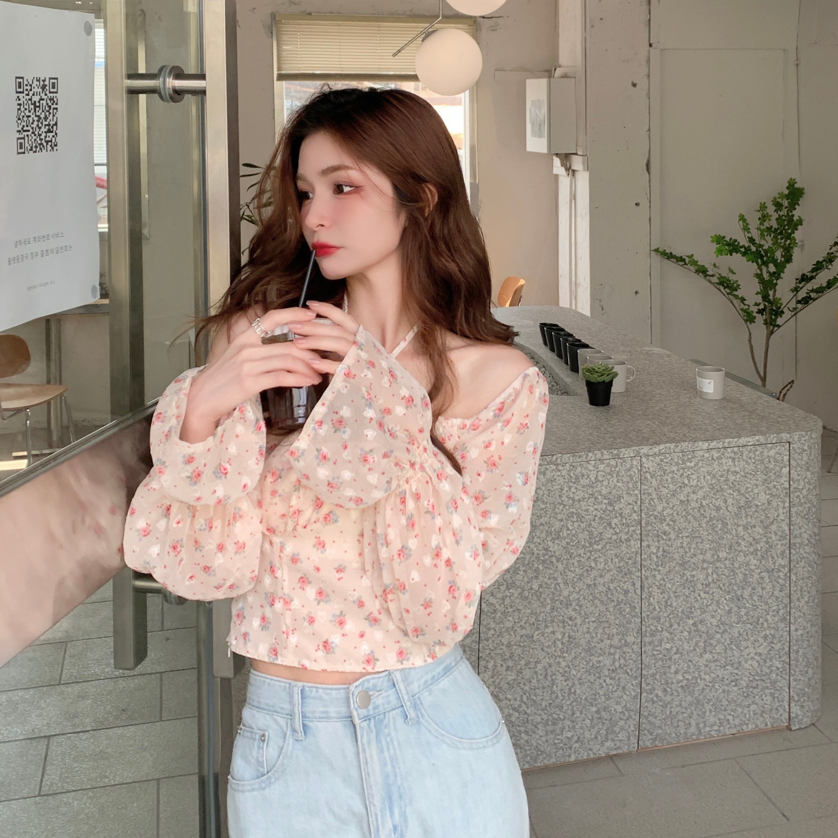 フローラルシャツ スプリングショートトップス ロング 大人ガーリー スウィート キュート カジュアル 春物 花柄 長袖 SYJ20228217306