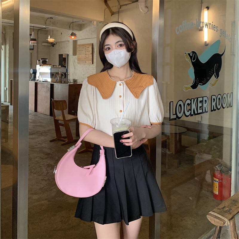 韓国ファッショントップス 夏服カラースリーブシャツ 大人ガーリー スウィート キュート カジュアル 夏物 SYJ23533251133