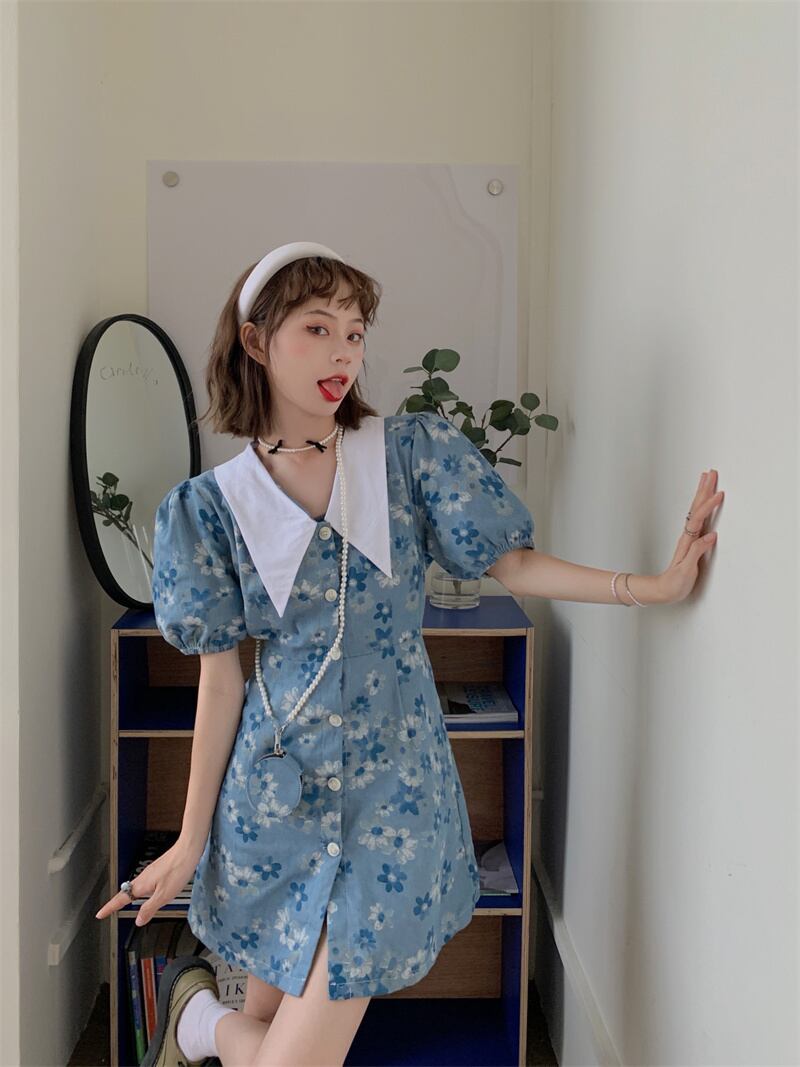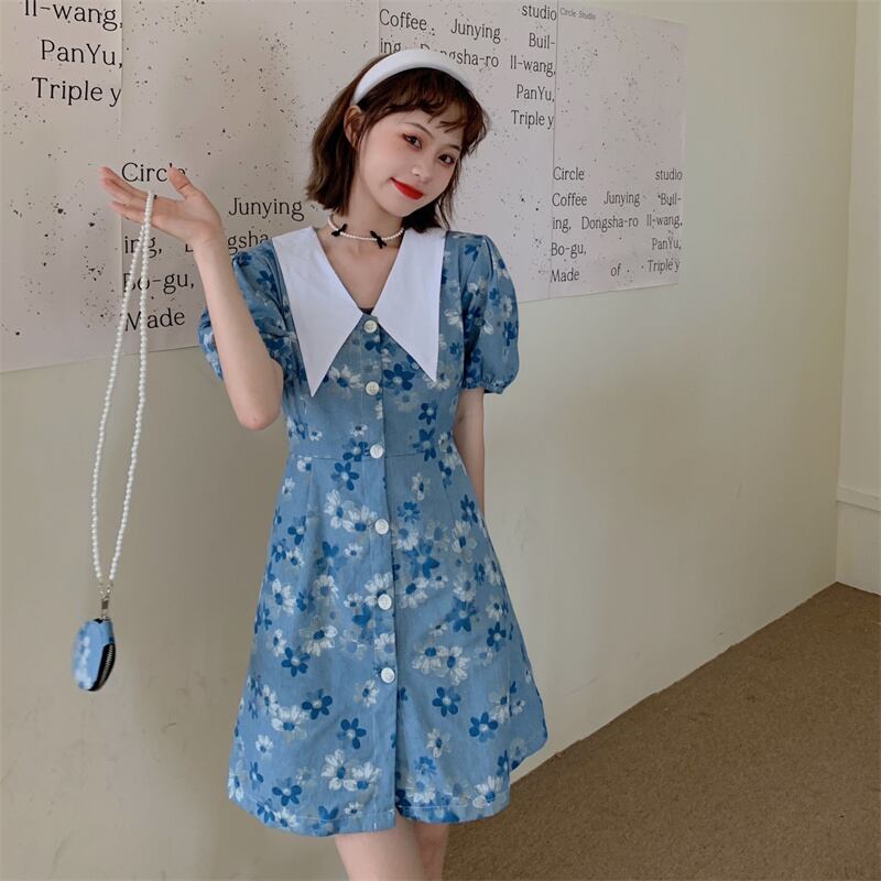 スリーブワンピース夏服ウェストショートスカート 大人ガーリー スウィート キュート カジュアル 夏物 ウエスト SYJ83151173726