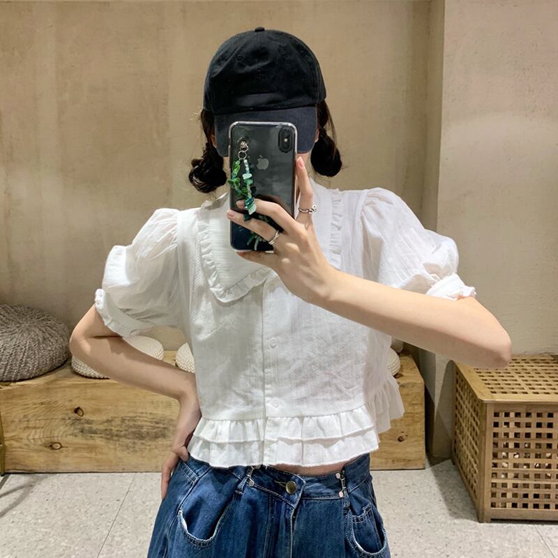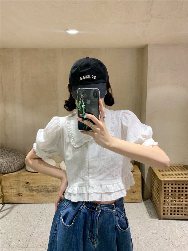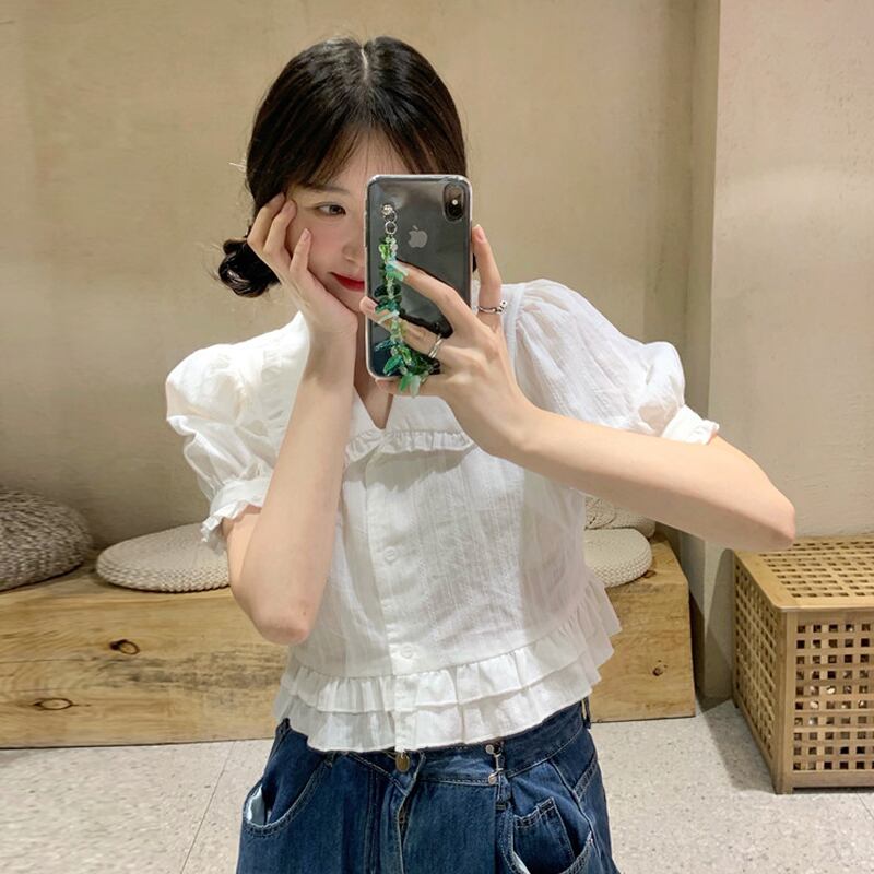 カラー半袖スリーブシャツ 夏服韓国ファッショントップス ショート ハーフスリーブ 夏物 SYJ3848659181