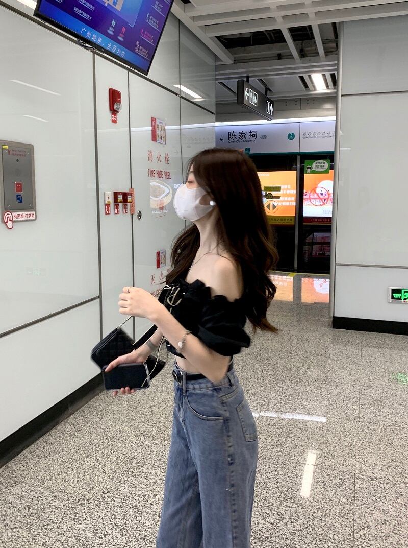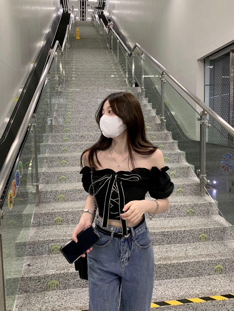 ショートトップス 夏服ブラックNEW 大人ガーリー スウィート キュート カジュアル 夏物 ピュア SYJ89108471151