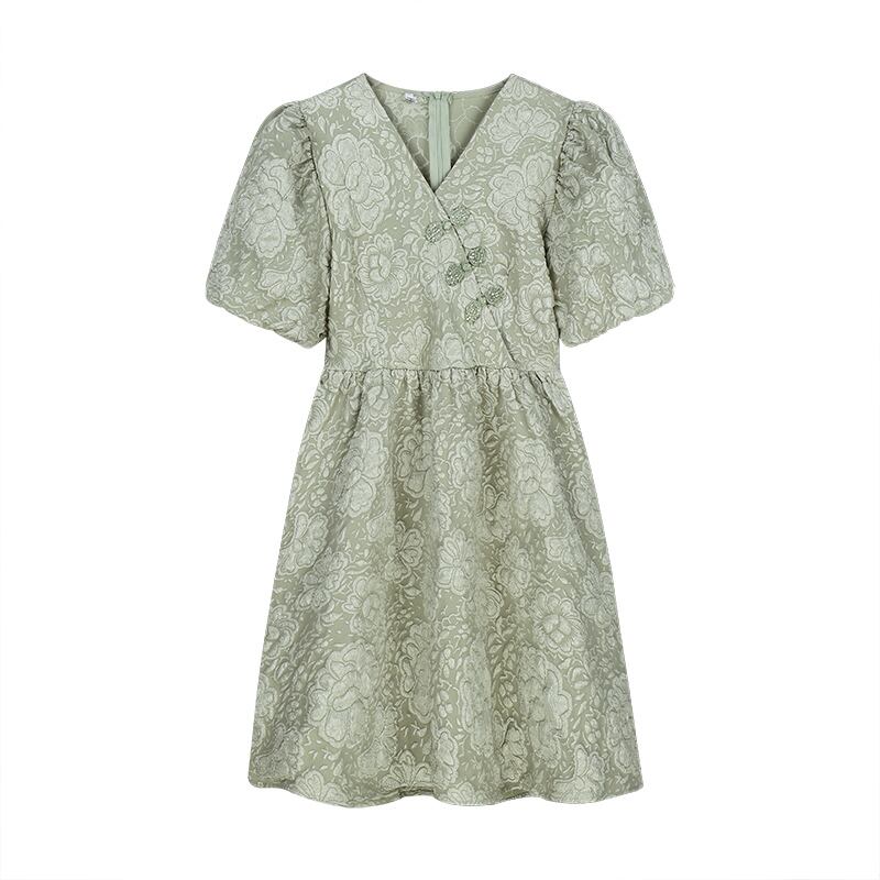 グリーンスリーブVネックワンピース夏服薄手ショートスカート 夏物 SYJ40901142279