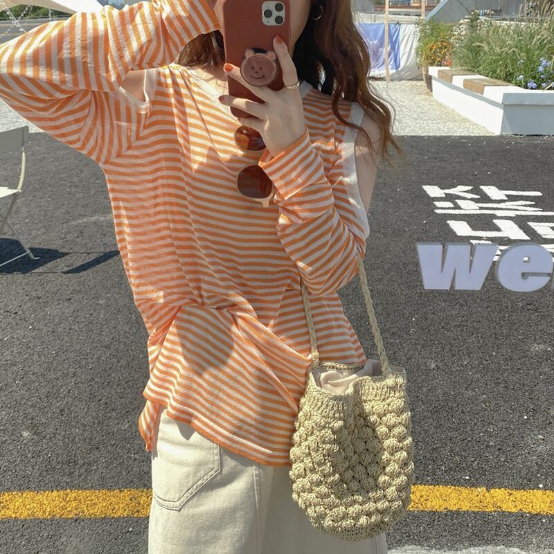 Tシャツ夏服薄手韓国ファッションスタイルトップス NEW ロング 夏物 オフショルダー 長袖 SYJ3692834913