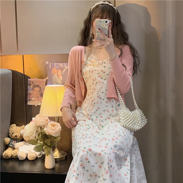 色:ピンクカーディガンワンピース,ワンピースピンクフラワースカート,ホワイトカーディガンワンピース,黄色い花のスカートのワンピース
