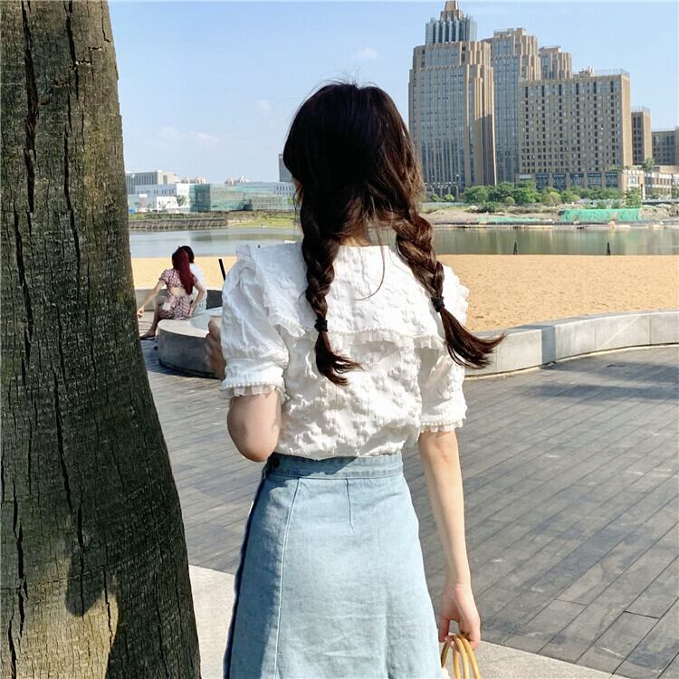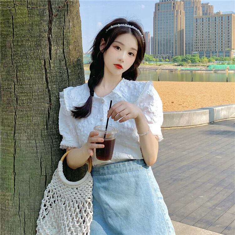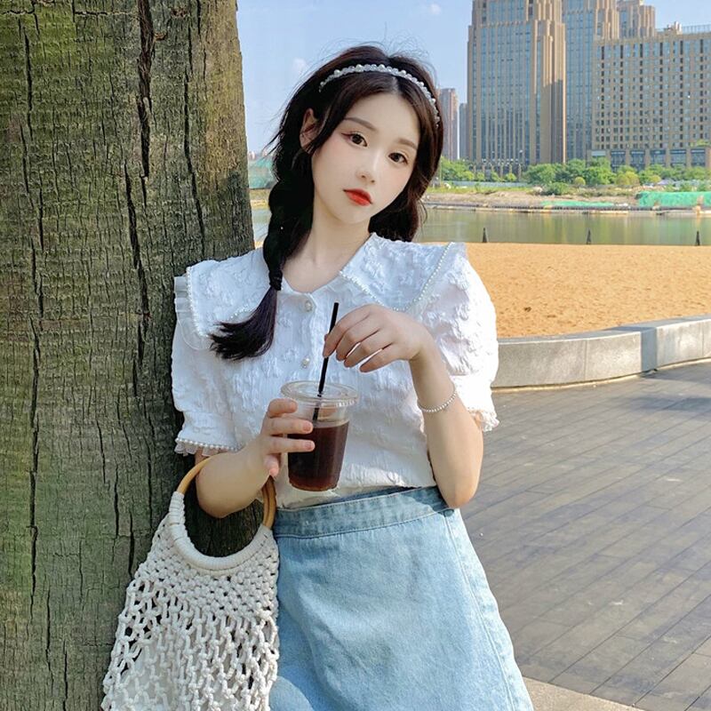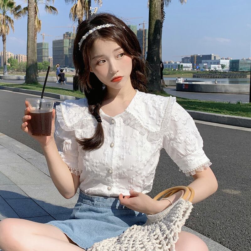 ホワイトスリーブシャツ 夏服スタイルトップス 大人ガーリー スウィート キュート カジュアル 夏物 SYJ6057334864