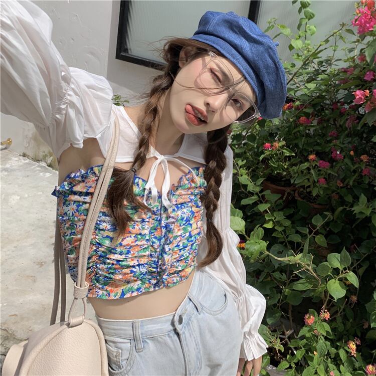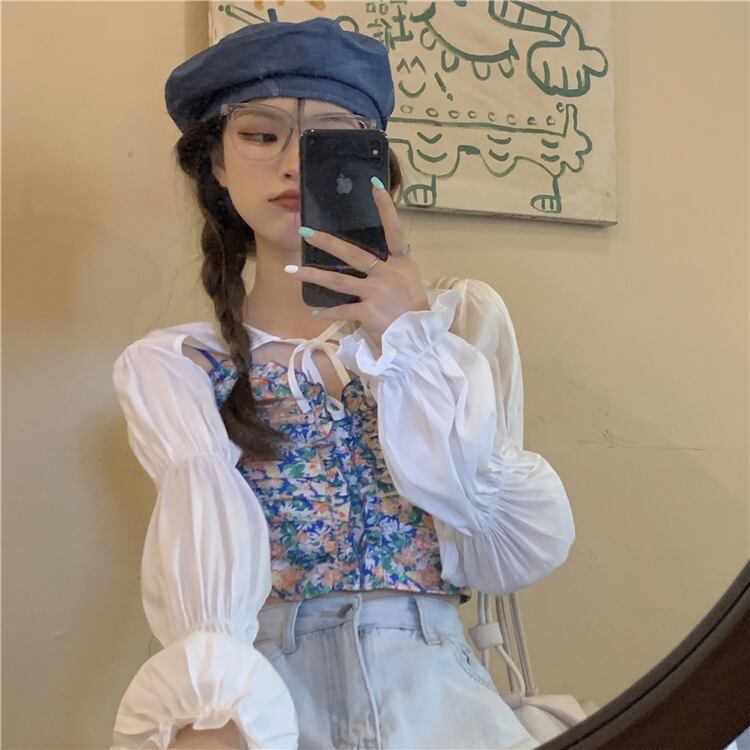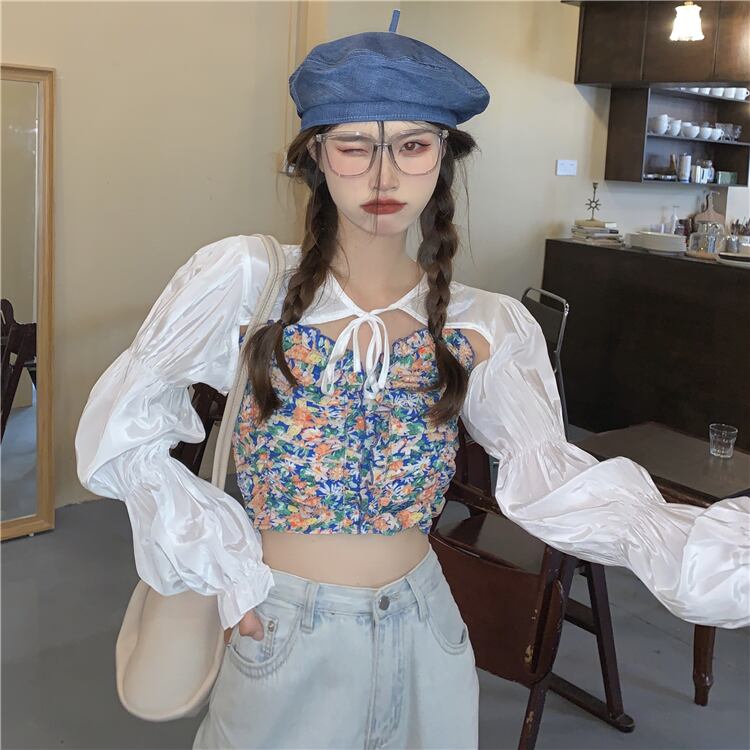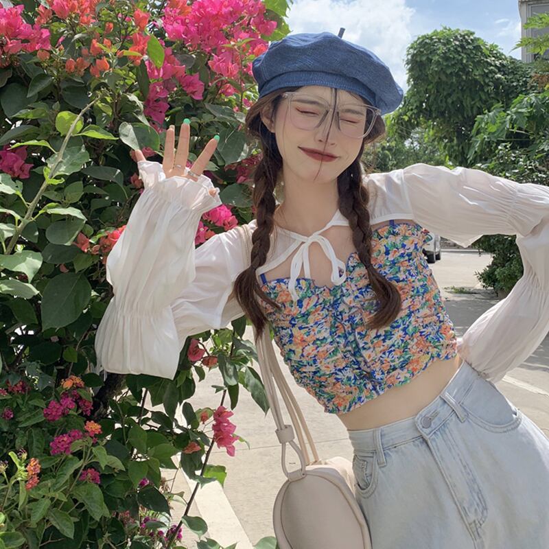 ブラウス 夏服ショールスリーブ長袖トップス セット ロング レッド 夏物 SYJ69182899714