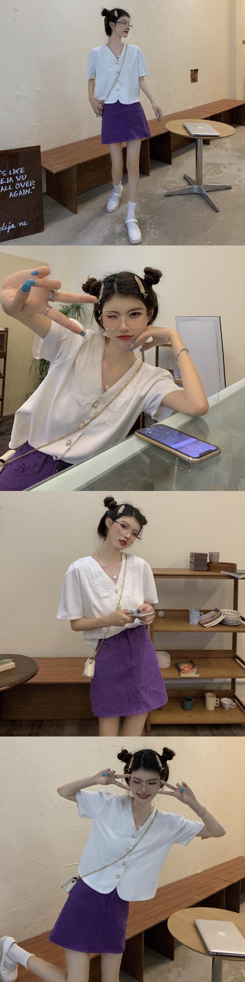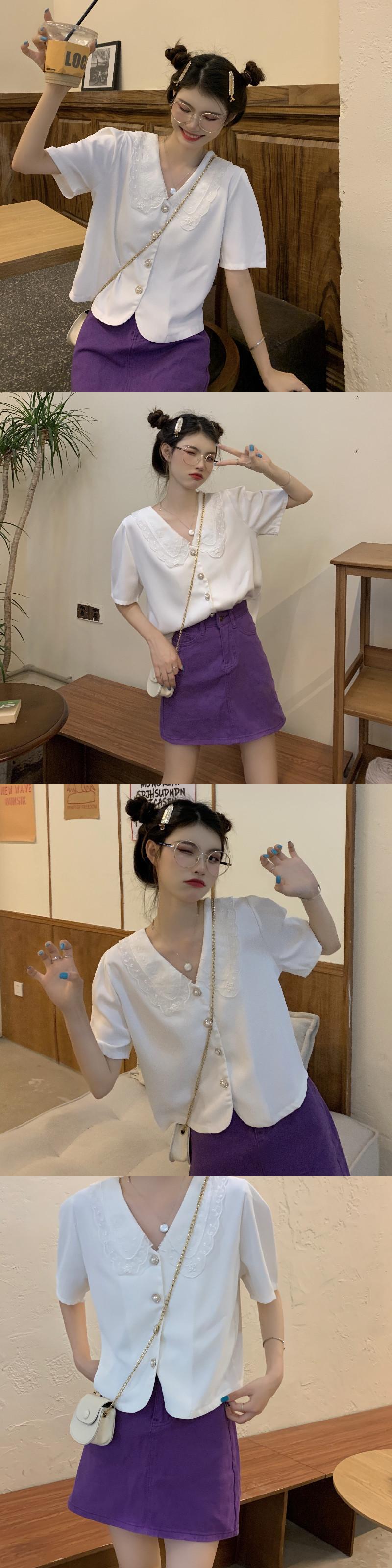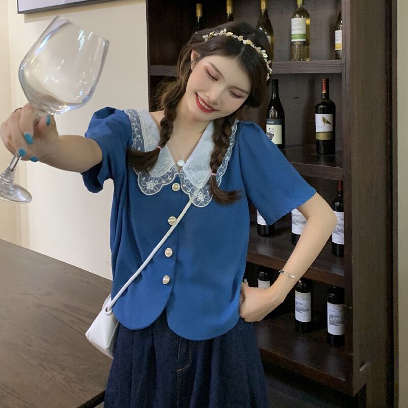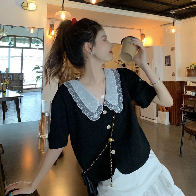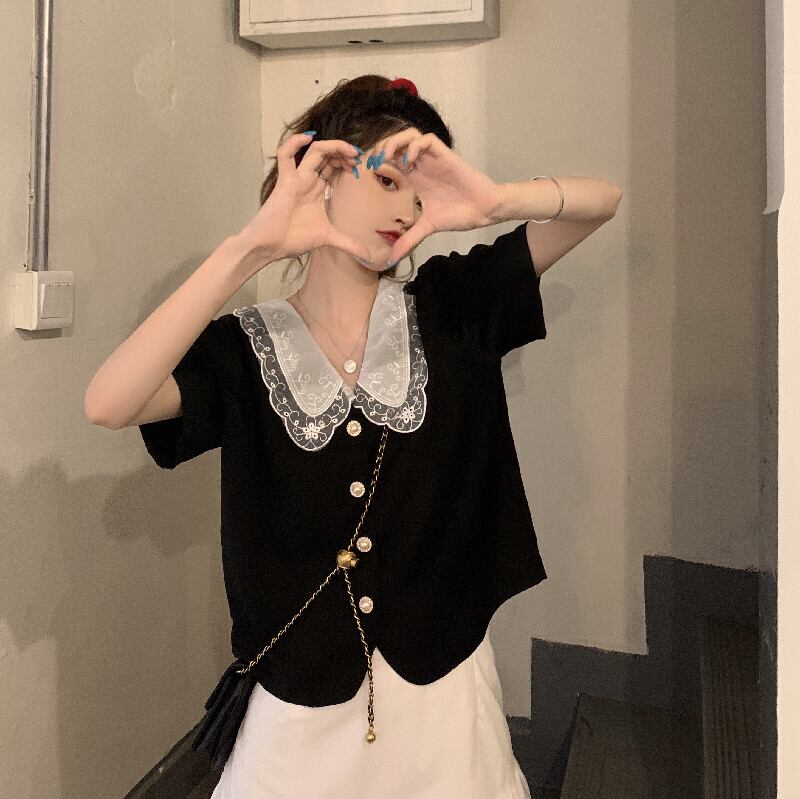 ブラックシャツ 夏服韓国ファッショントップス 大人ガーリー スウィート キュート カジュアル 夏物 SYJ97430446764