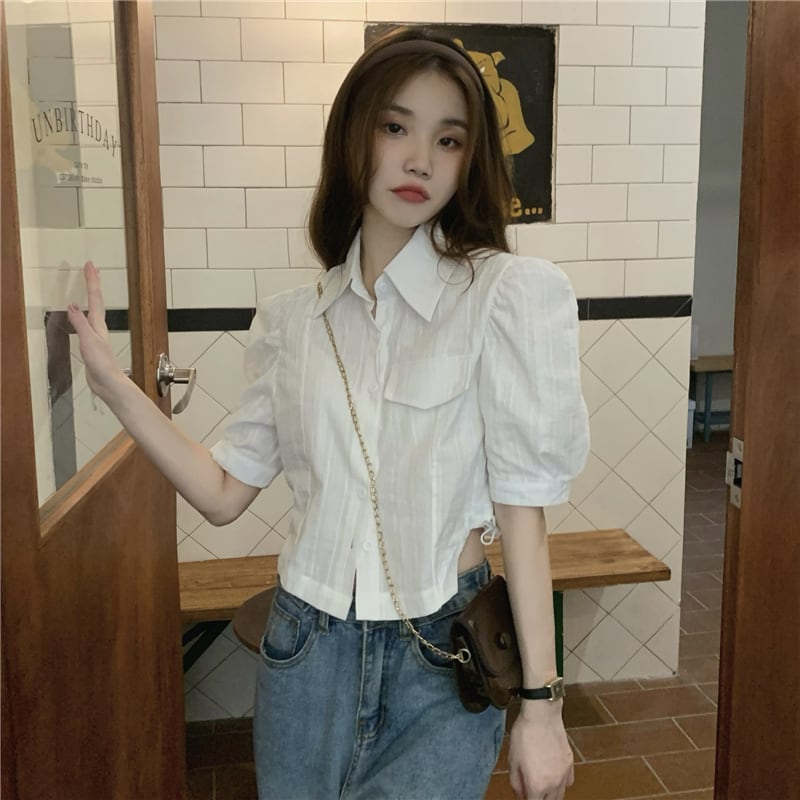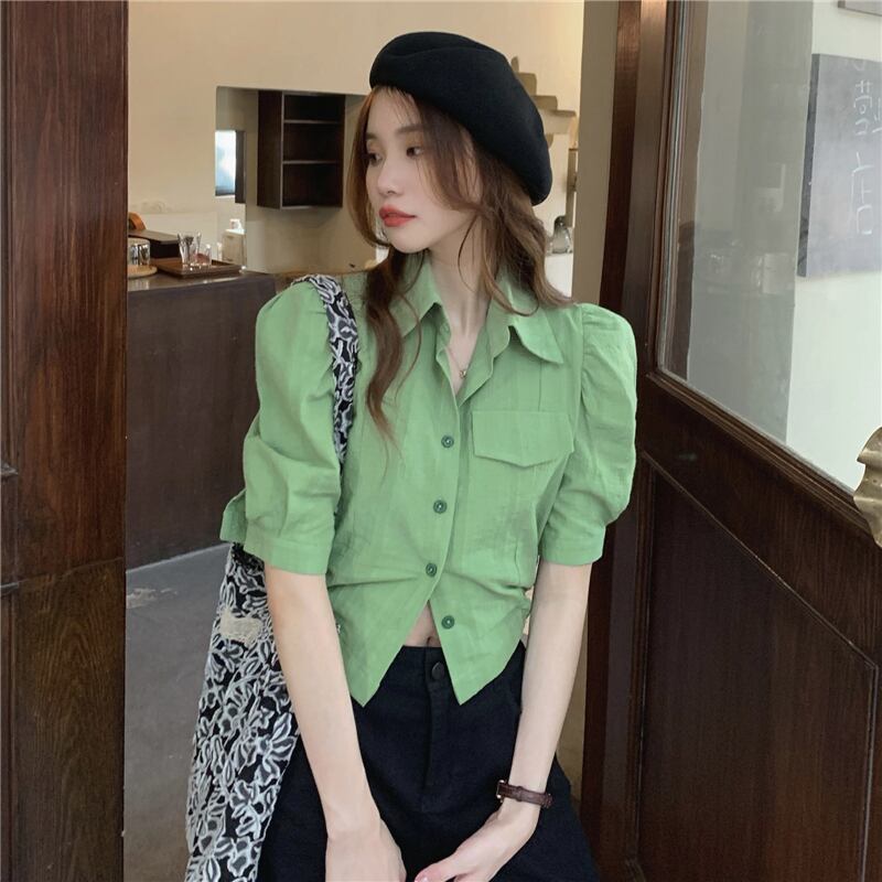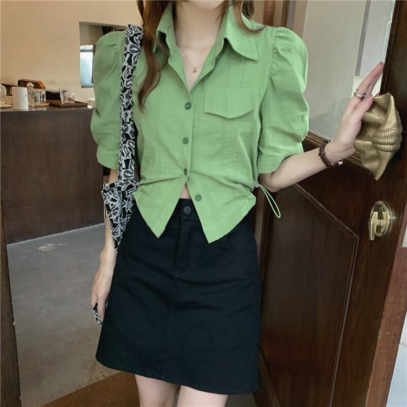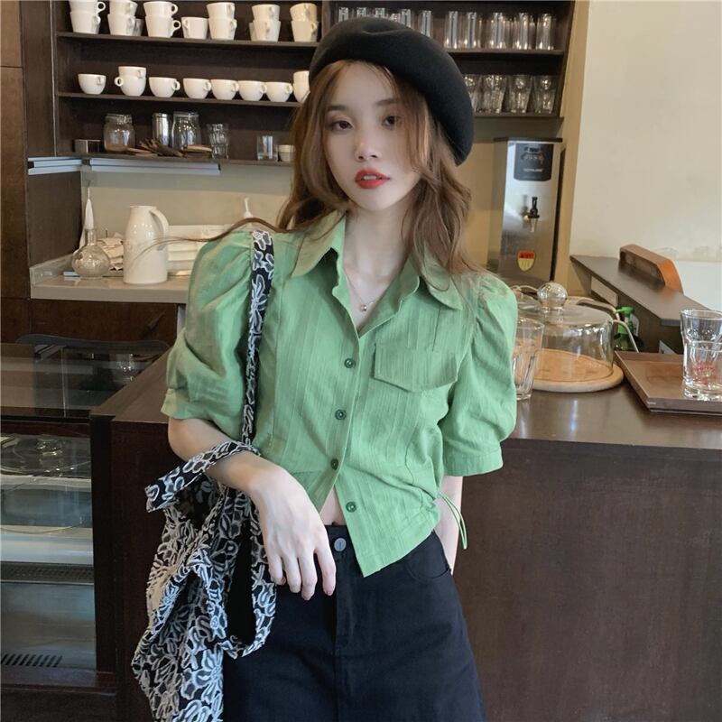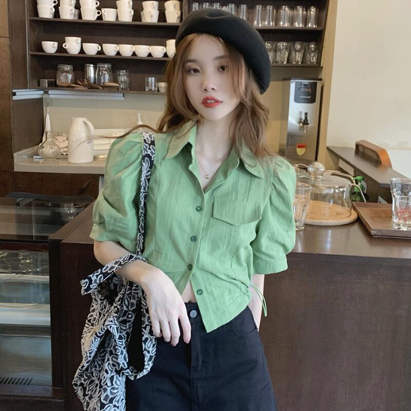 ショートトップス 夏服スタンダードグリーンスリーブシャツ レトロ 大人ガーリー スウィート キュート カジュアル 夏物 SYJ80141701976