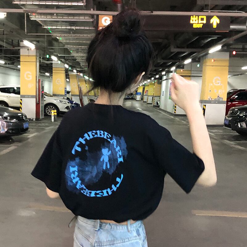 スタンダードブラックTシャツ夏服トップス コットン レトロ 夏物 SYJ29946597697